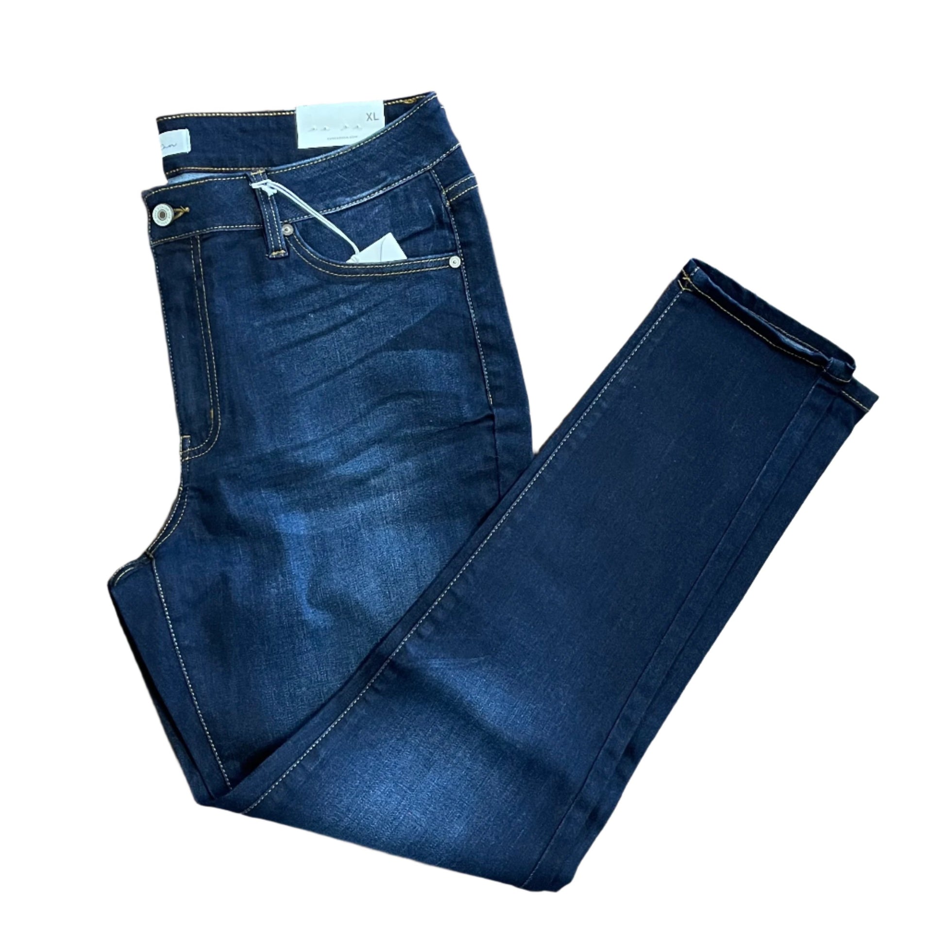 The Alani Mid Rise Jeans come in a super skinny cut with a gently faded wash and 3-D whiskering that gives this style a slightly worn-in look. Sits right at the natural waistline as it tapers down the leg giving you a figure-flattering fit that's sexy and sleek. Made with super-stretch denim that's soft and flexible. Features a classic five-pocket design, single-button front, and zip-fly closure.