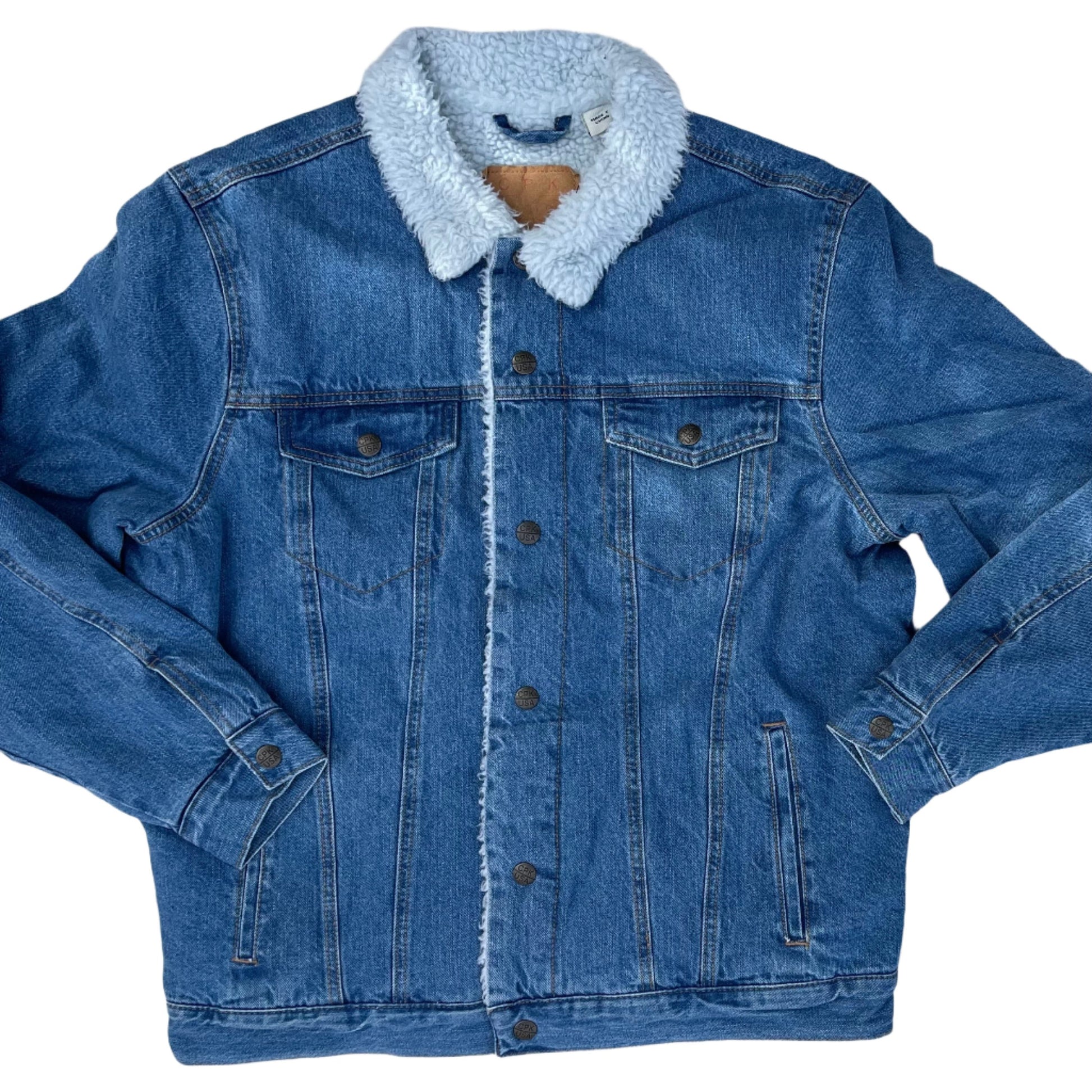 The American West blue jean jacket has sherpa lining and offers 4 pockets.