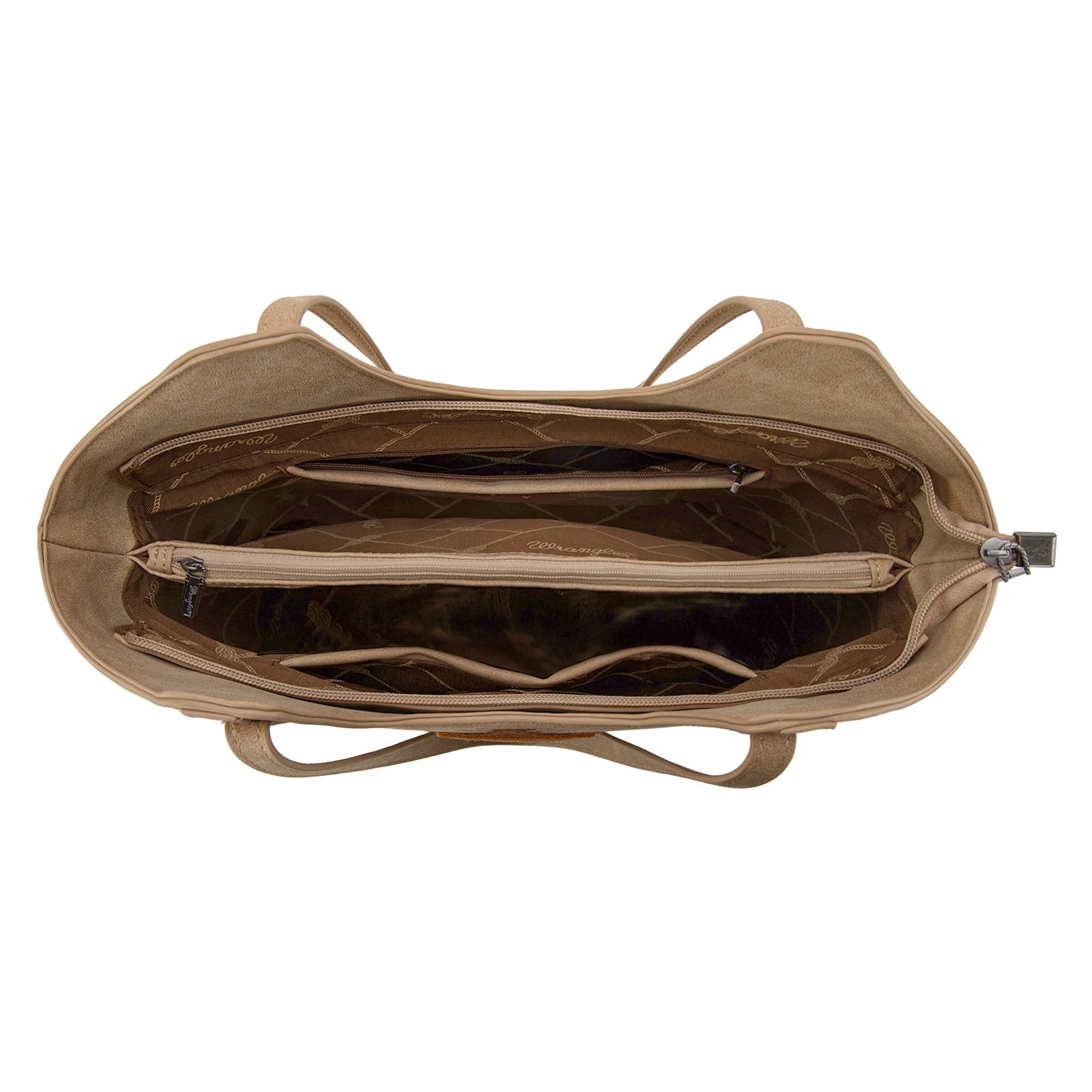 - Inside of the bag includes a zippered pocket and 2 open pocket