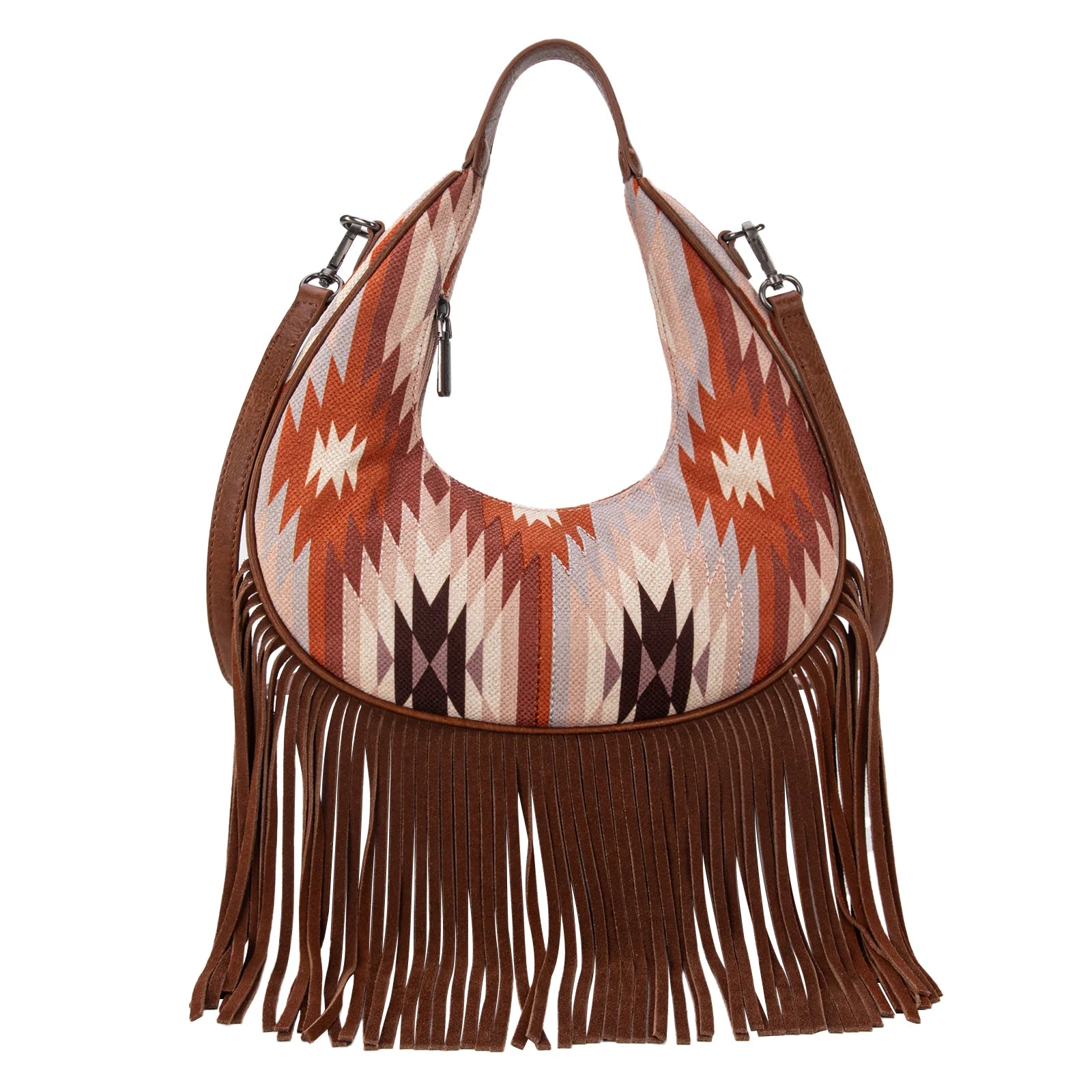Aztec Fringe Hobo - Brown