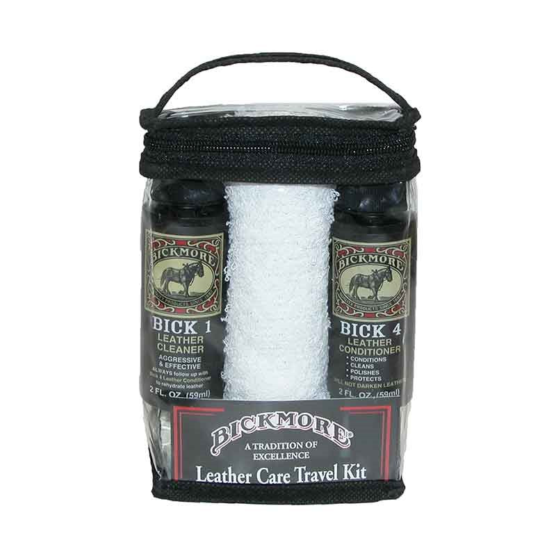 The Bickmore Travel kit comes with leather cleaner, conditioner and a cleaning cloth in a clear travel-friendly zip pouch.