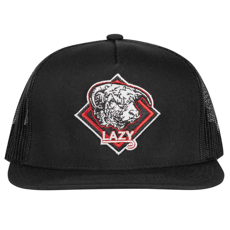 Step up your hat game with the Lazy J Ranch Wear Black Red Diamond Hereford Classic Five Panel Trucker Hat. This stylish accessory combines a modern silhouette with timeless ranch aesthetics, perfect for those who appreciate quality and tradition. The striking black and red design, featuring the iconic Hereford diamond emblem, makes a bold statement while showcasing your passion for ranch culture.