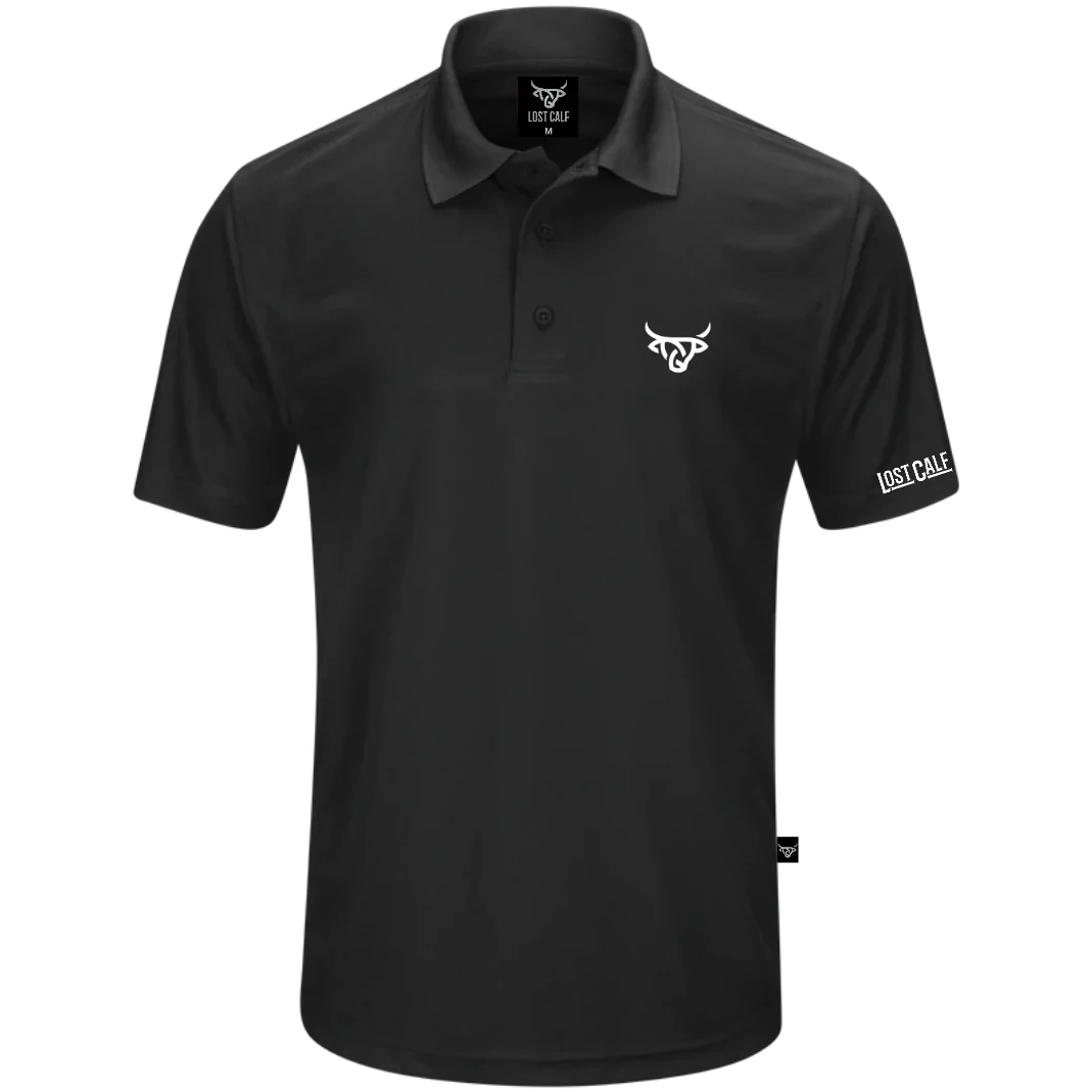 The Lost Calf polo features the Lost Calf logo on the left chest and the left sleeve. It offers a fashion collar with three-button placket, embossed metal buttons with plastic rims, welt cuffs and side vents.