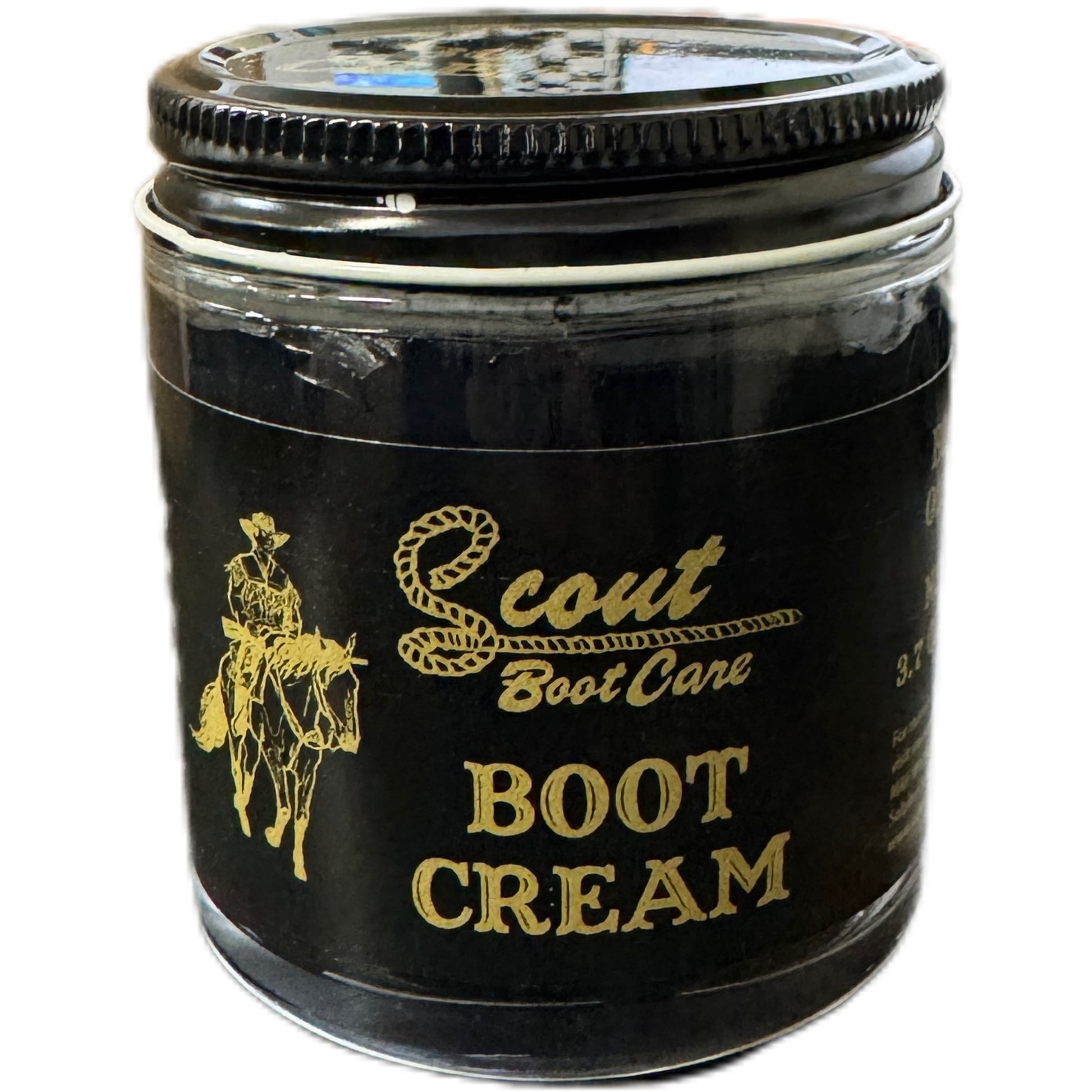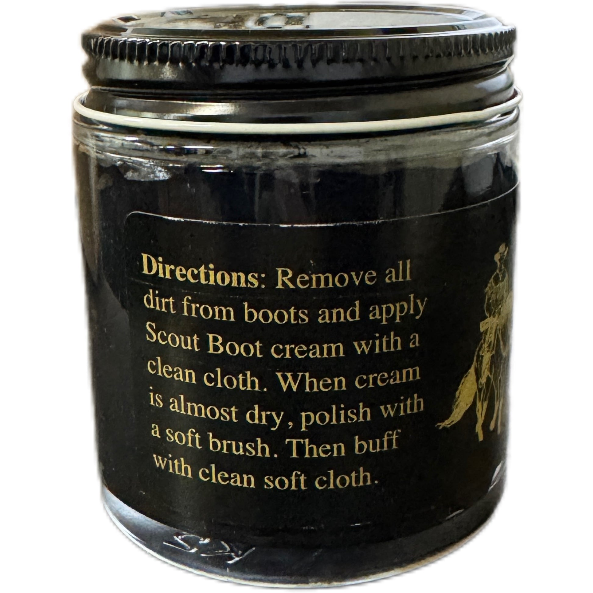 Scout Boot Cream is a favorite for boots, fine saddlery, shoes and other smooth leather materials. It revitalizes the color of the leather and hides the scuffs and scraches from every day wear. You will keep your leather boots and shoes looking their best with a quick polish.
