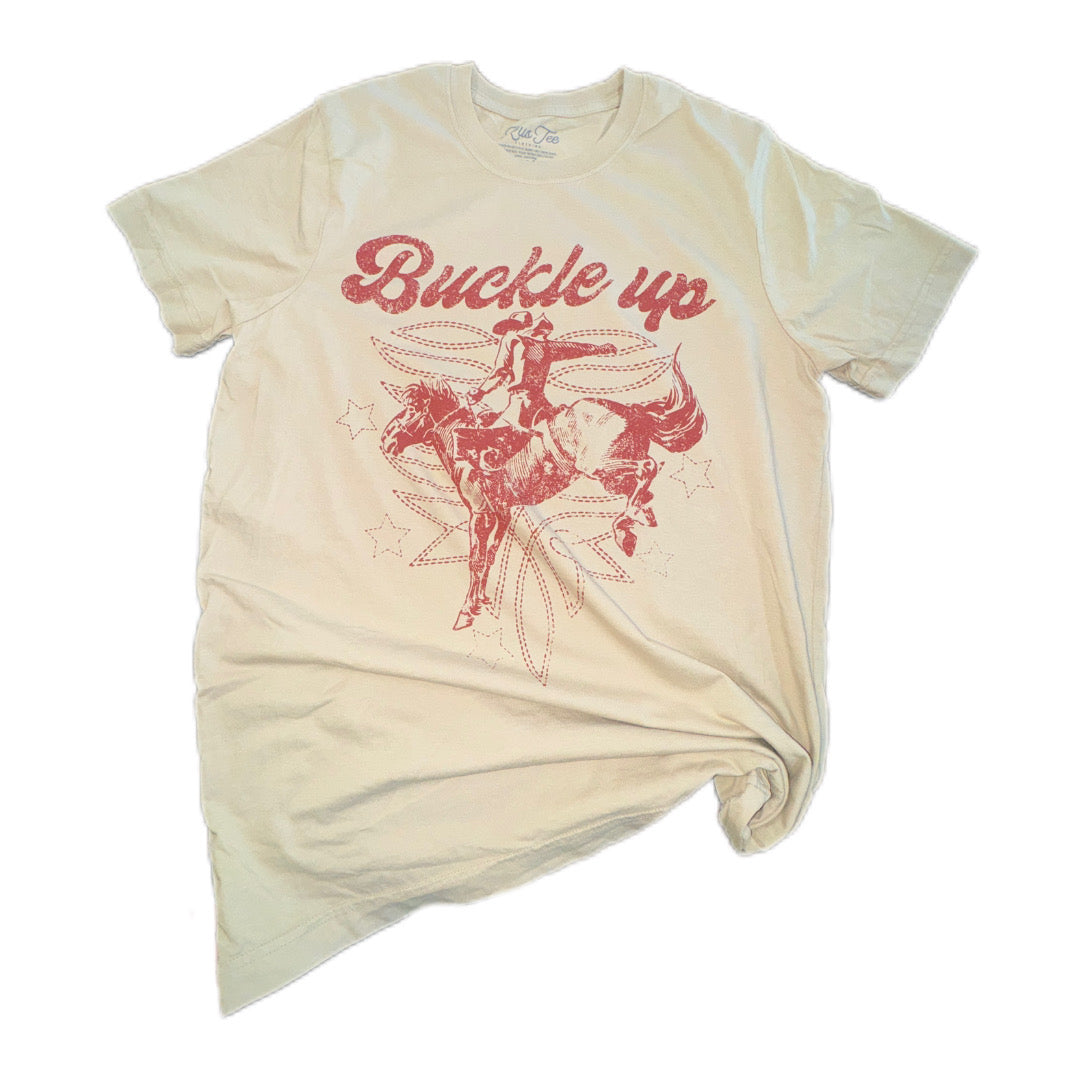 BUCKLE UP COWBOY BOOTS STITCH PATTERN GRAPHIC TSHIRTS