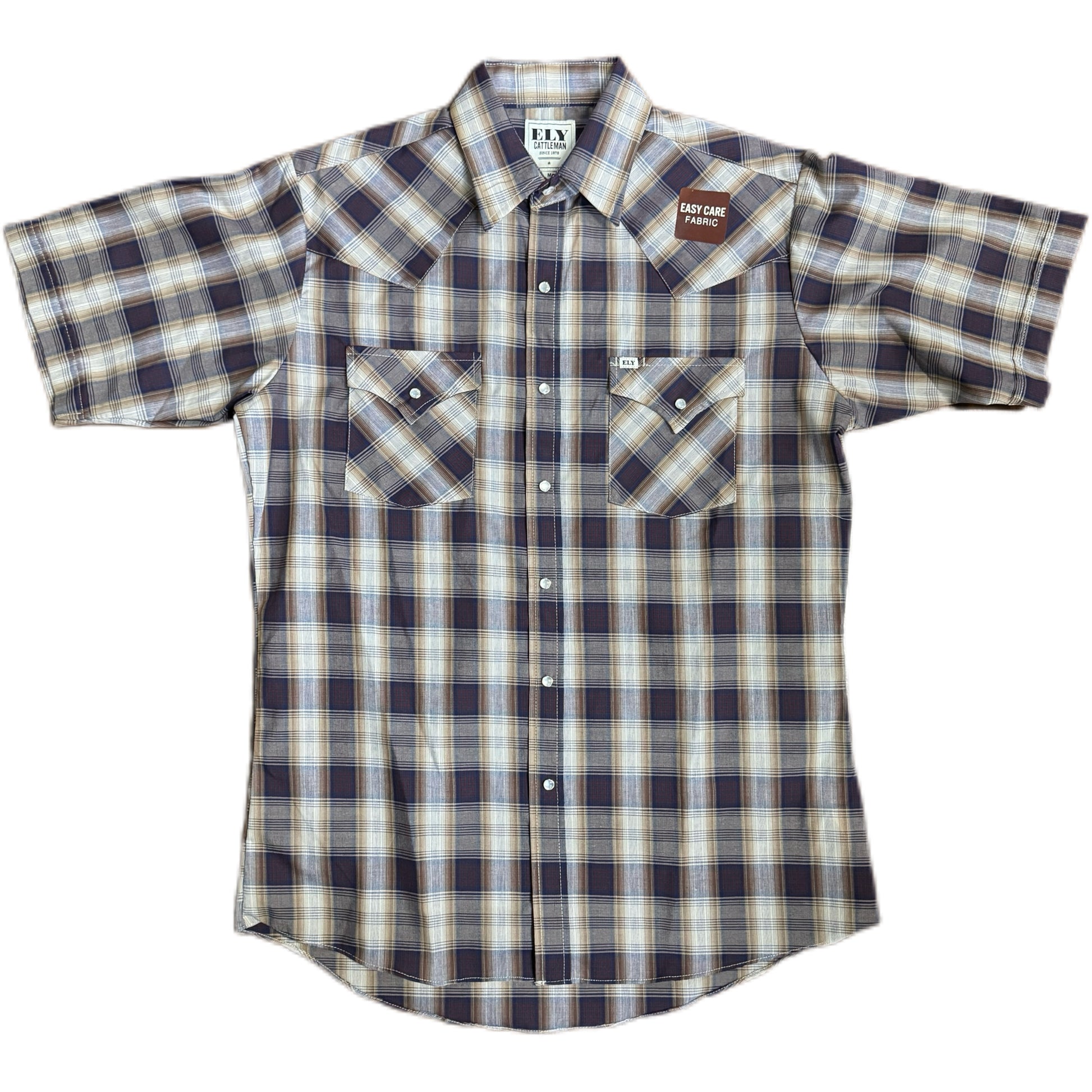 Western style for your everyday. With its two front flap pockets, authentic yokes and pearlized snaps, this short sleeve plaid shirt will get you ready to saddle up and kick back, whatever your mood.