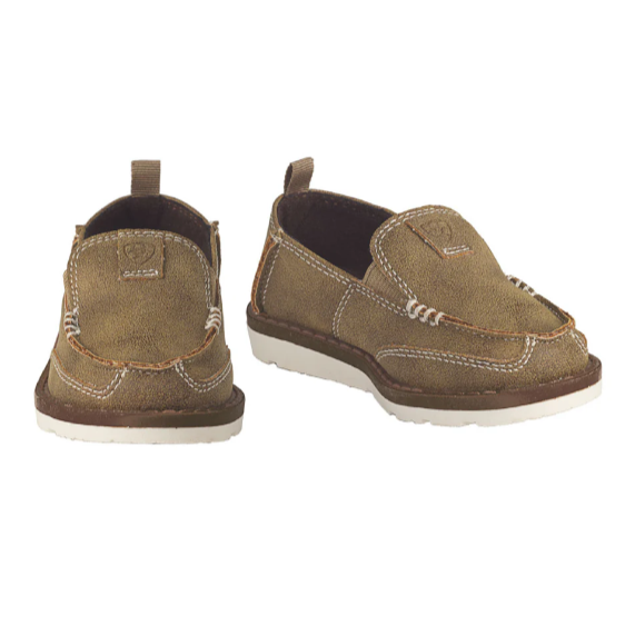 Cute and comfy describe these Ariat Cruiser casual shoes. Slip on with elastic at sides of tongue. Soft tan fabric with contrast stitching. Super comfortable for all day wear.