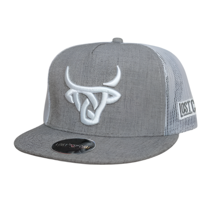 Baseball cap with Lost Calf logo embroidered on front in Black , Lost Calf stitched on left side. Snap back - one size fits all.