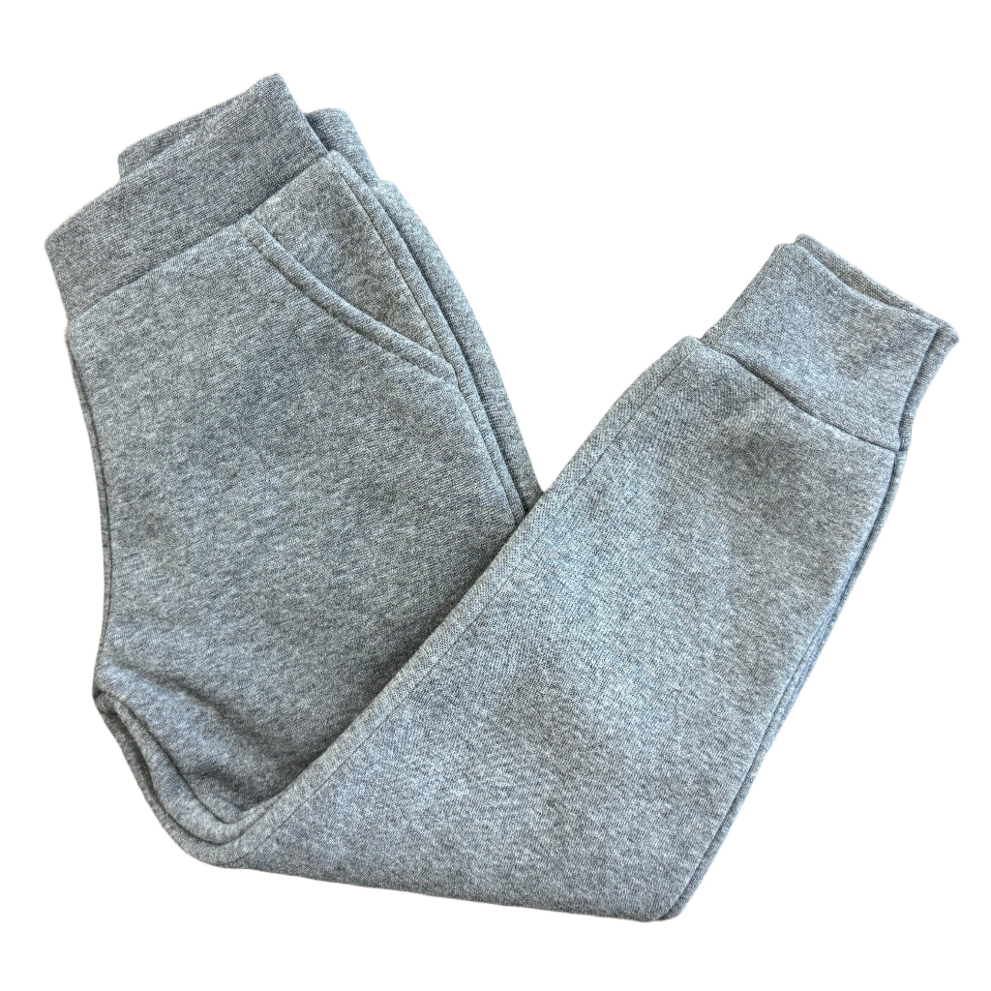 The youth dark grey jogger sweatpants made of fleece are comfortable with an elastic waist band for easy slip on, have side pockets and have a slight ribbed cuff for a snug fit.