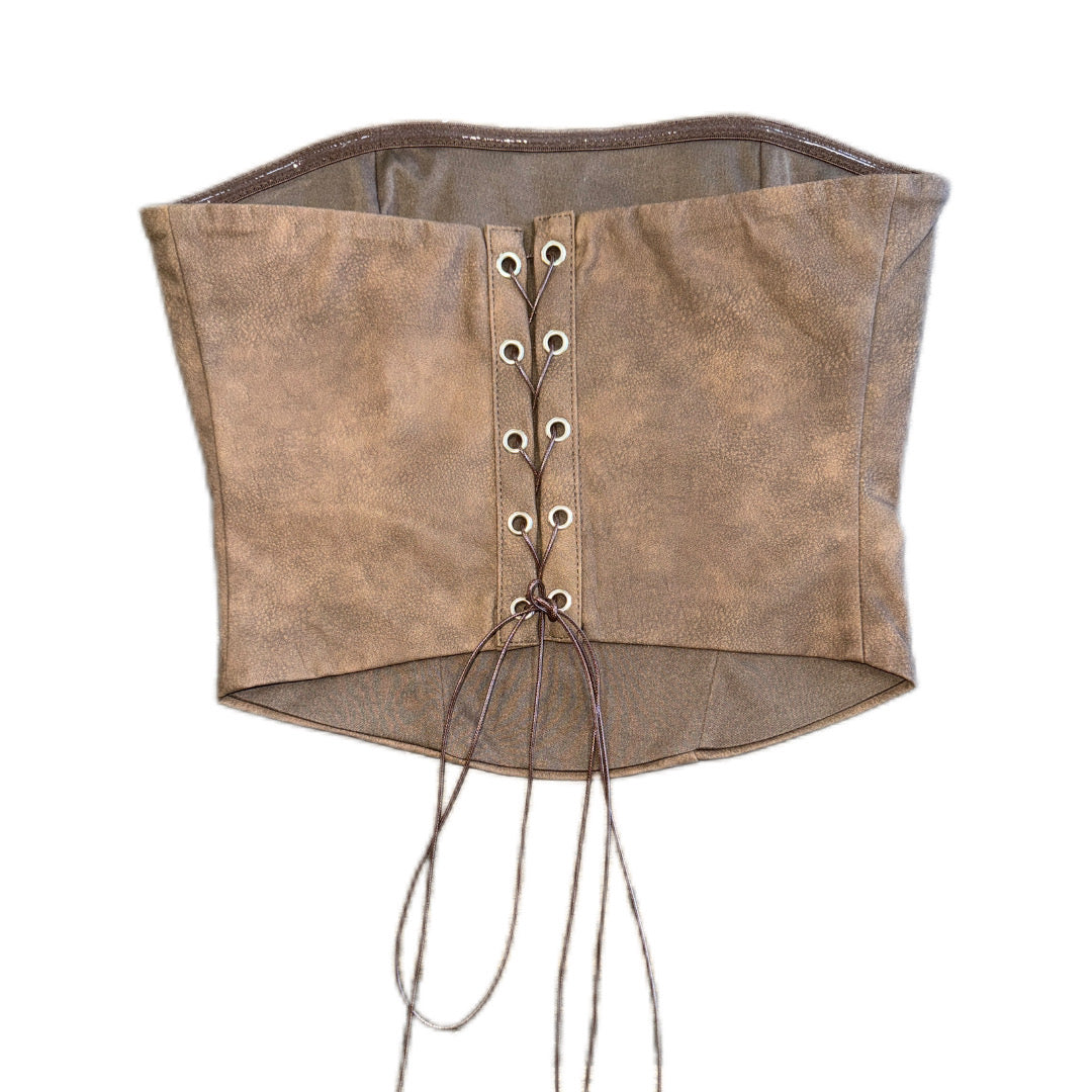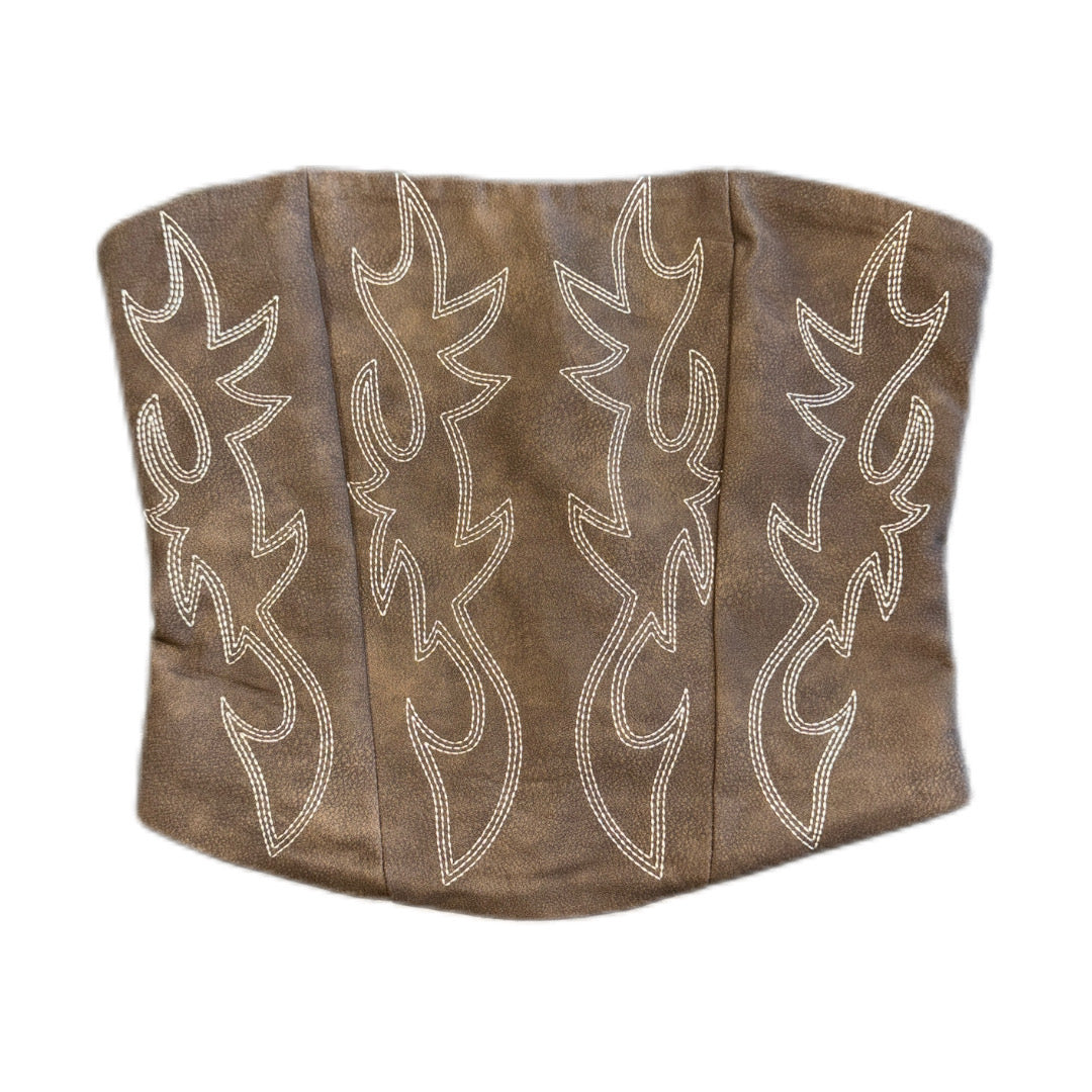 BECKEE PU Vegan Leather Embroidered Western Corset Top.