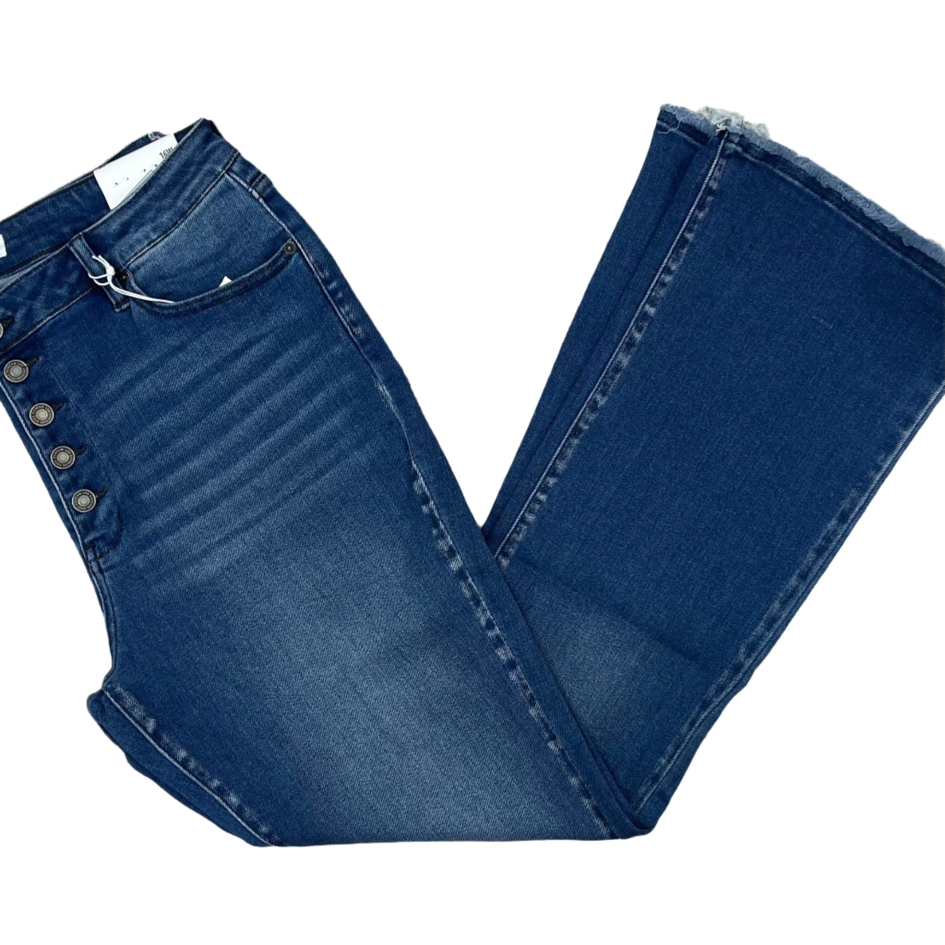 The Rainn Ultra High Rise Flare Jeans come in a slightly faded wash with a raw hem for a subtle lived-in look that comes in a chic and flattering flared fit. Sits high above the natural waistline as it tapers down the thigh and flares out towards the calf. Made with stretch denim that moves with the body as it retains its shape even after multiple wears. Features a classic five-pocket design and five-button front closure.