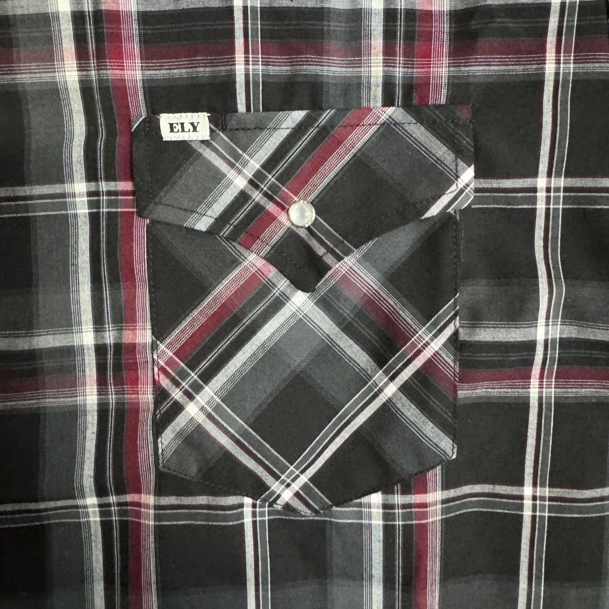 Western style for your everyday. With its two front flap pockets, authentic yokes and pearlized snaps, this short sleeve plaid shirt will get you ready to saddle up and kick back, whatever your mood.