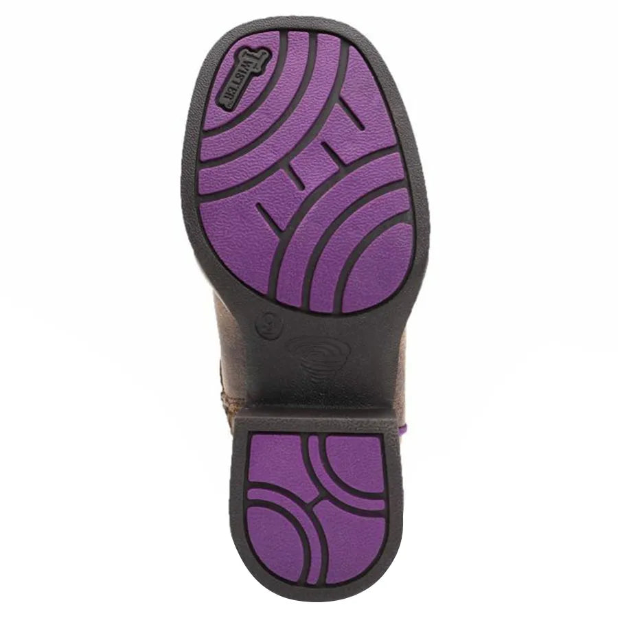The Twister Hannah Children's Boot offers western arrows paired with a floral design. This boot offers a pop of color along with purple stitching and piping. Hannah provides a breathable mesh lining.