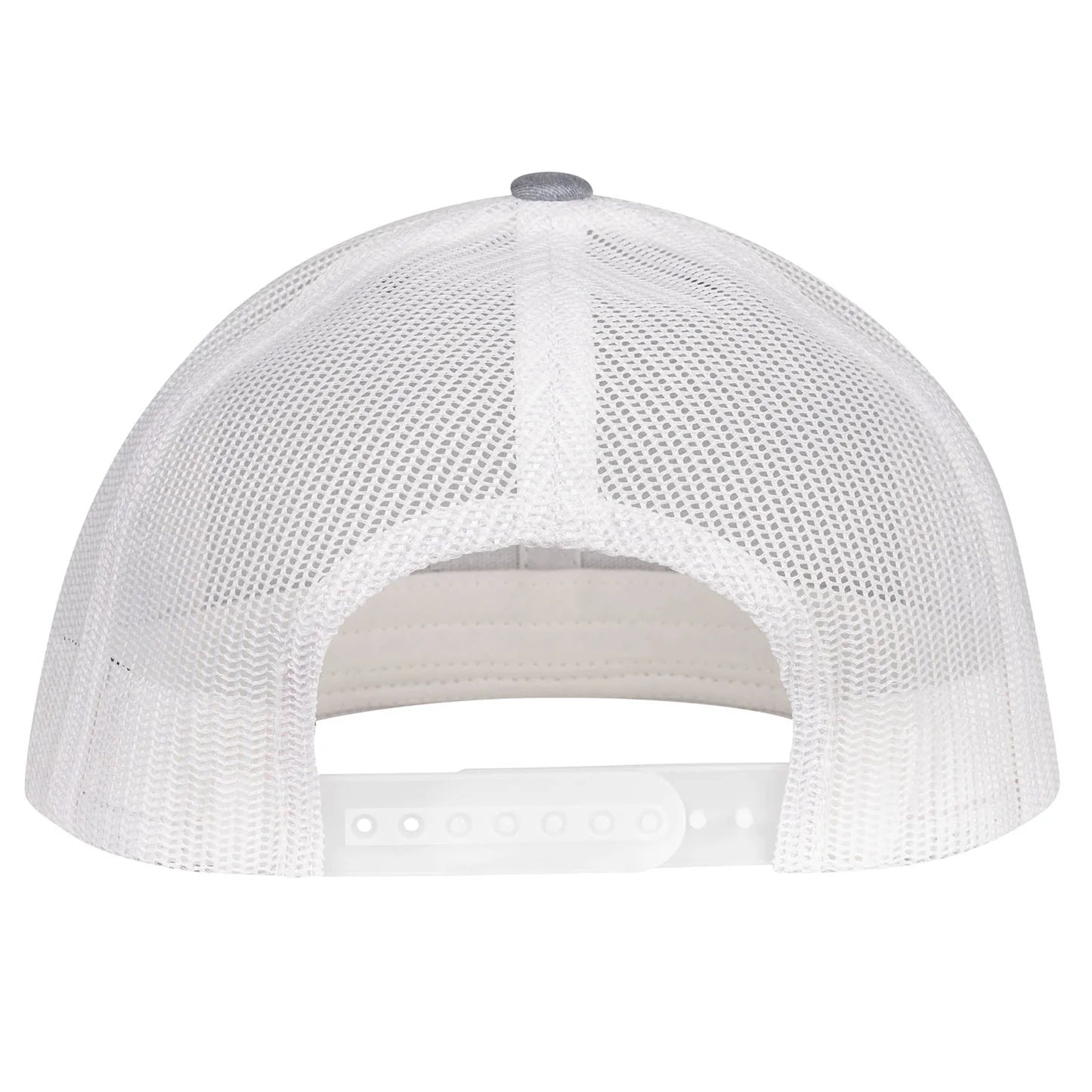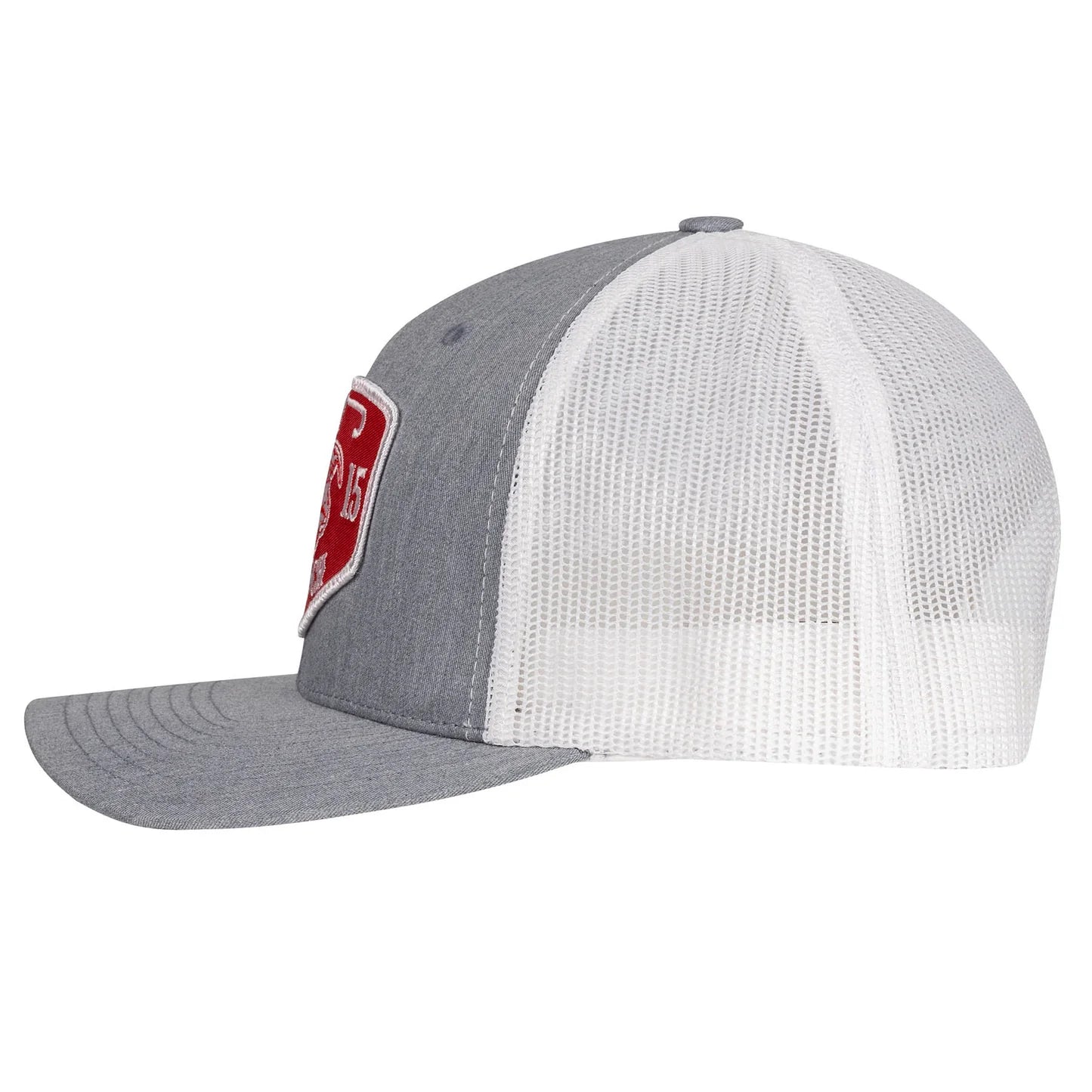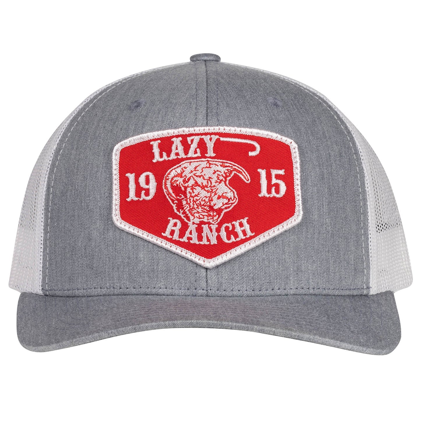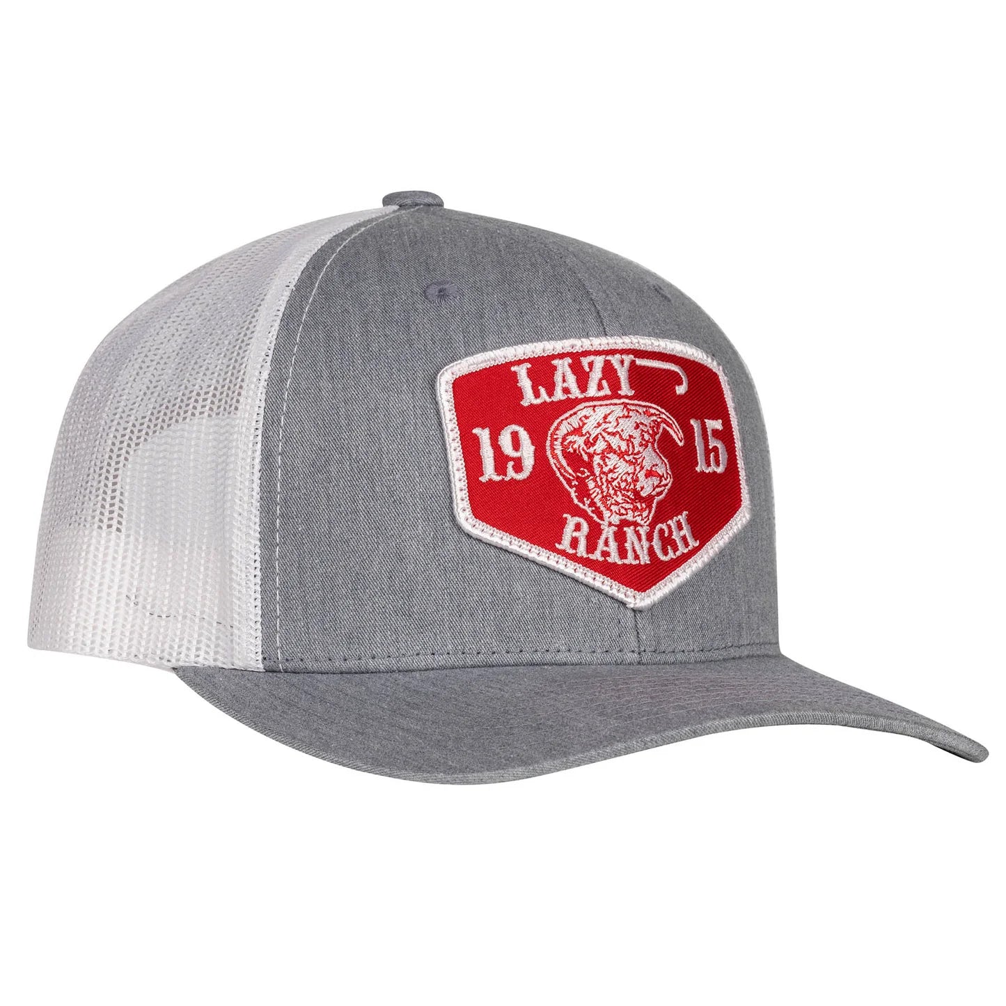 Discover a blend of comfort and style with the Lazy J Ranch Heather & White Red Ranch Mid Profile Trucker Hat. This hat showcases a modern design that seamlessly combines practicality with a classic ranch aesthetic. The heather gray fabric pairs effortlessly with the crisp white front, accented by a vibrant red "Ranch" patch, creating a striking visual appeal that suits any casual occasion.