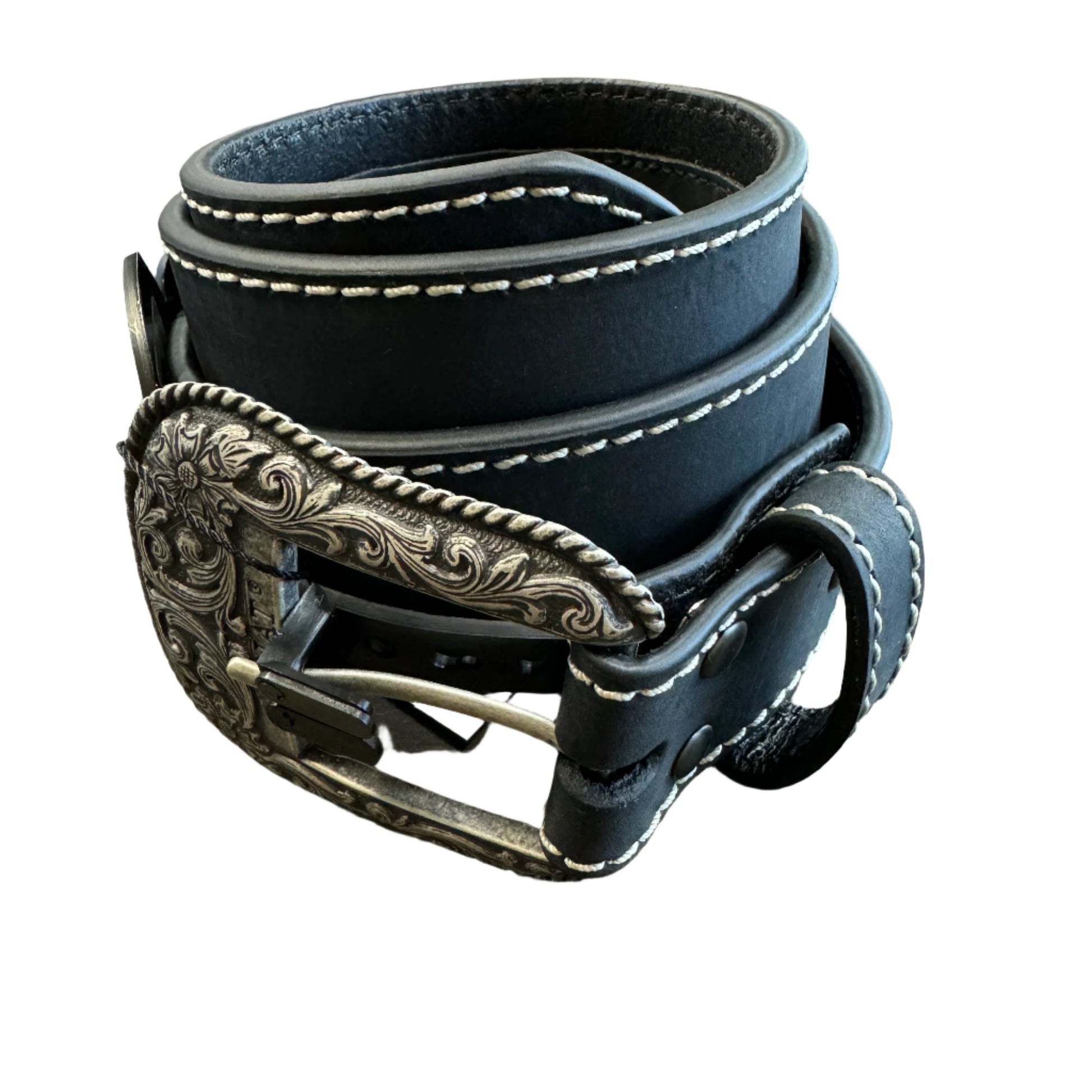 Fashionable Ariat ladies belt features a classic leather strap with heavy stitched edges and a beautiful Ariat buckle. Available in sizes Small through X-Large.