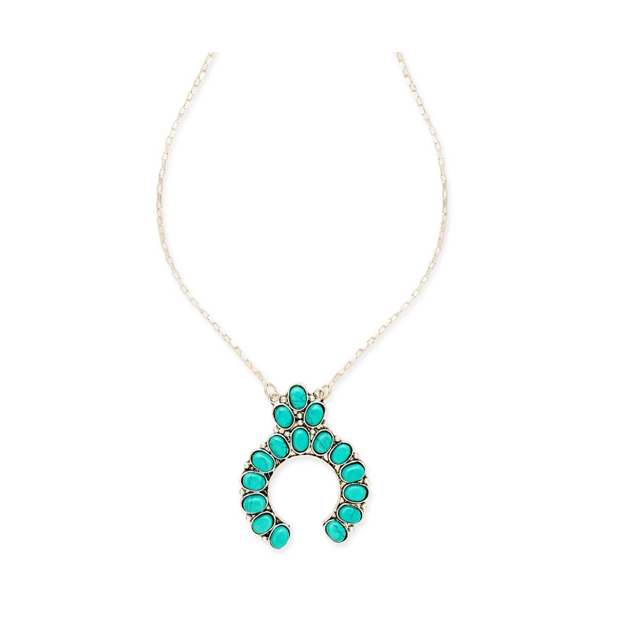 You'll love this alluring necklace! It features a gorgeous squash blossom pendant with fine detailing, and turquoise stones. It all makes for an amazing piece that you'll love wearing!