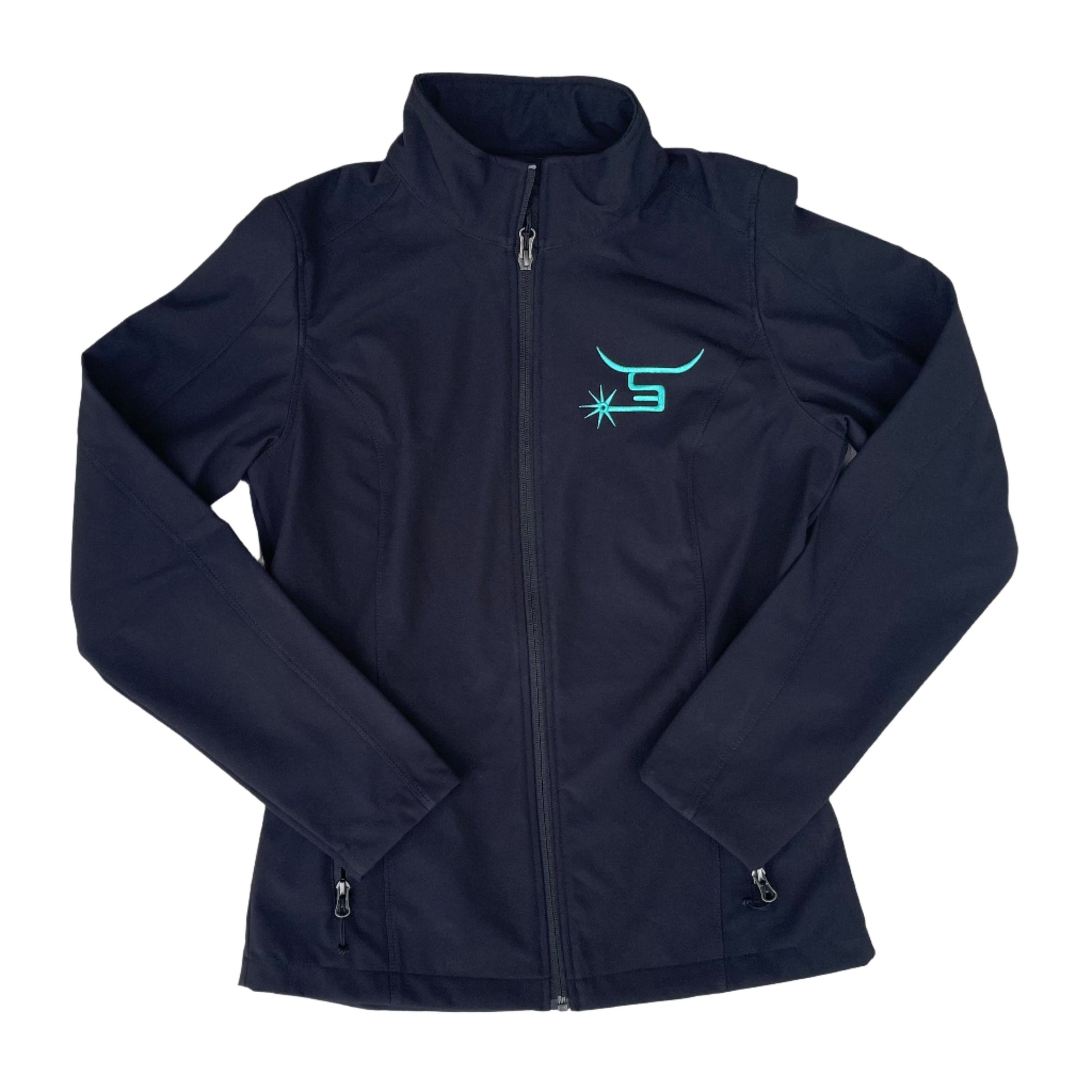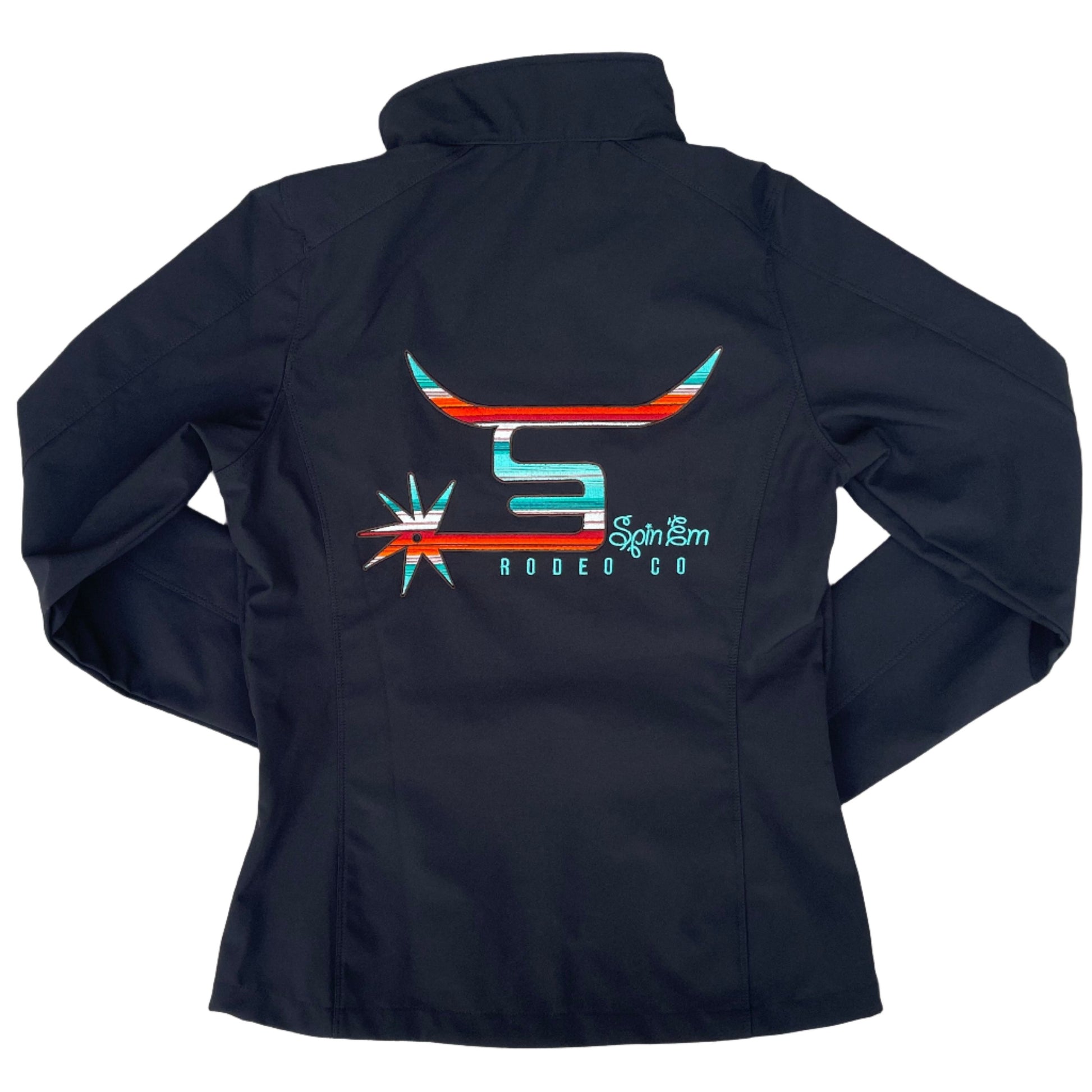 The Horizon Logo softshell jacket from Spin Em features front zippered pockets, microfleece interior and is water resistant.