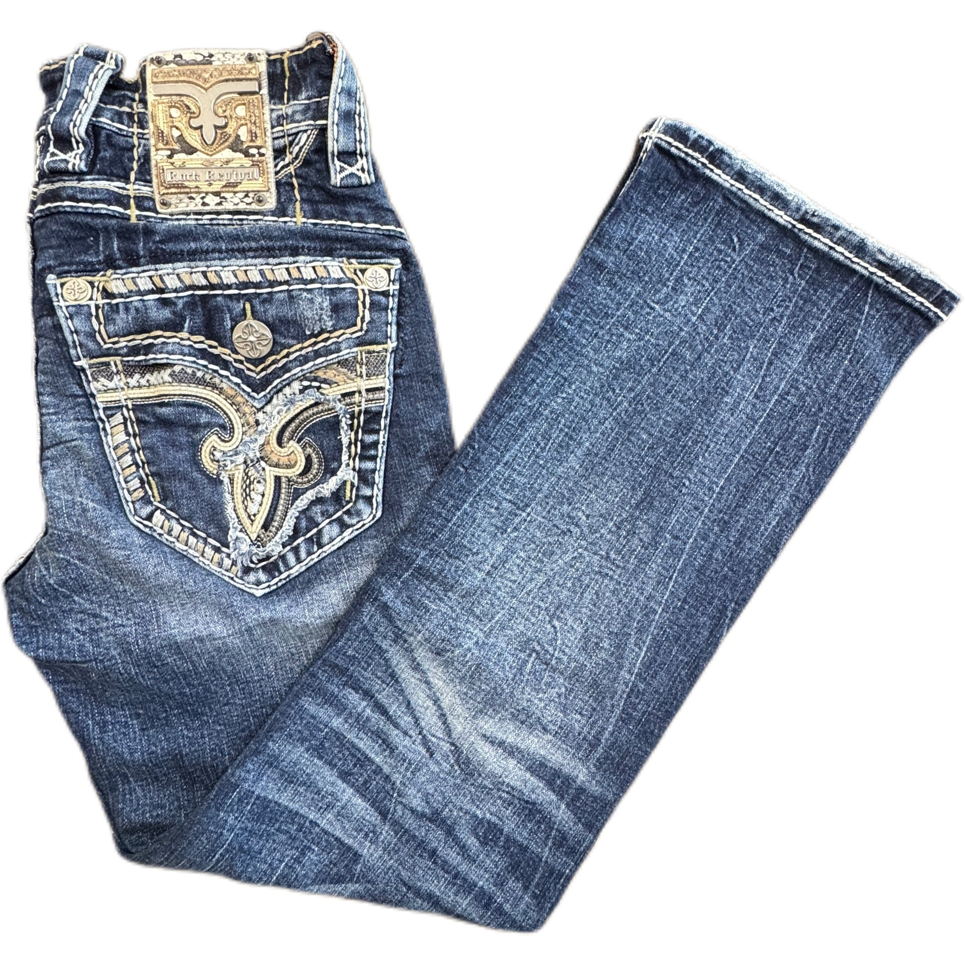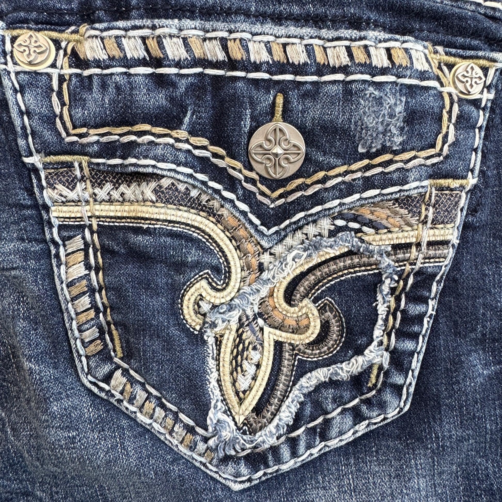 INVERTED FLEUR DE LIS BLOWOUT POCKET DESIGN.