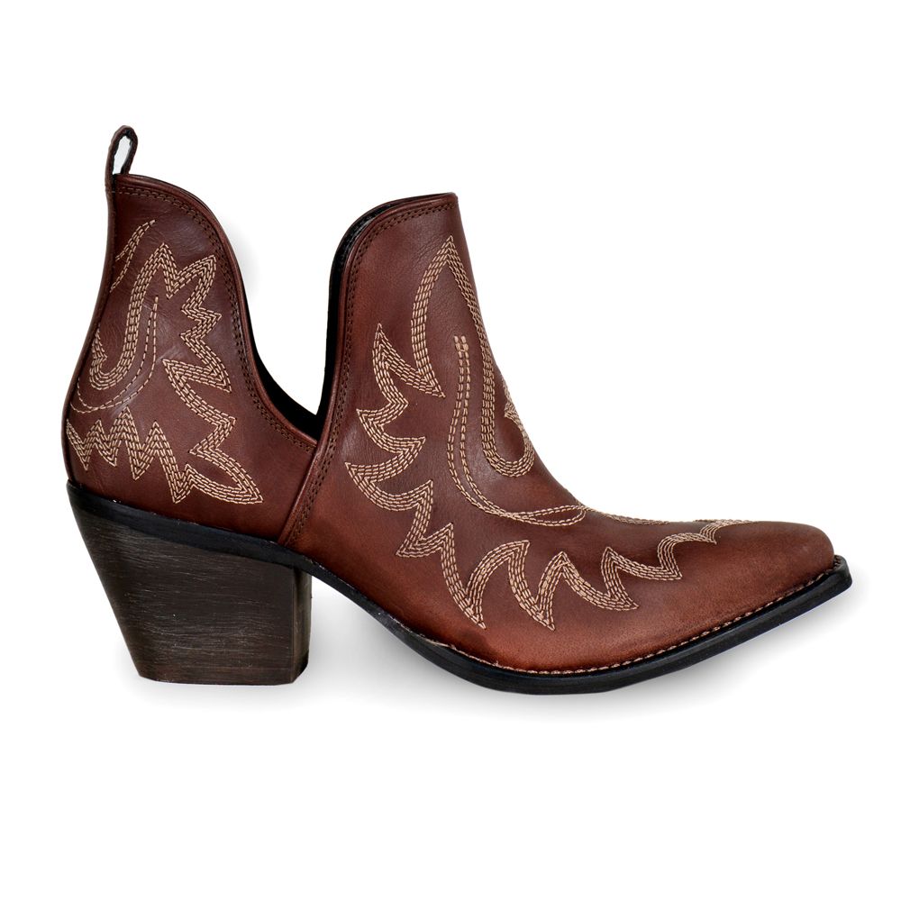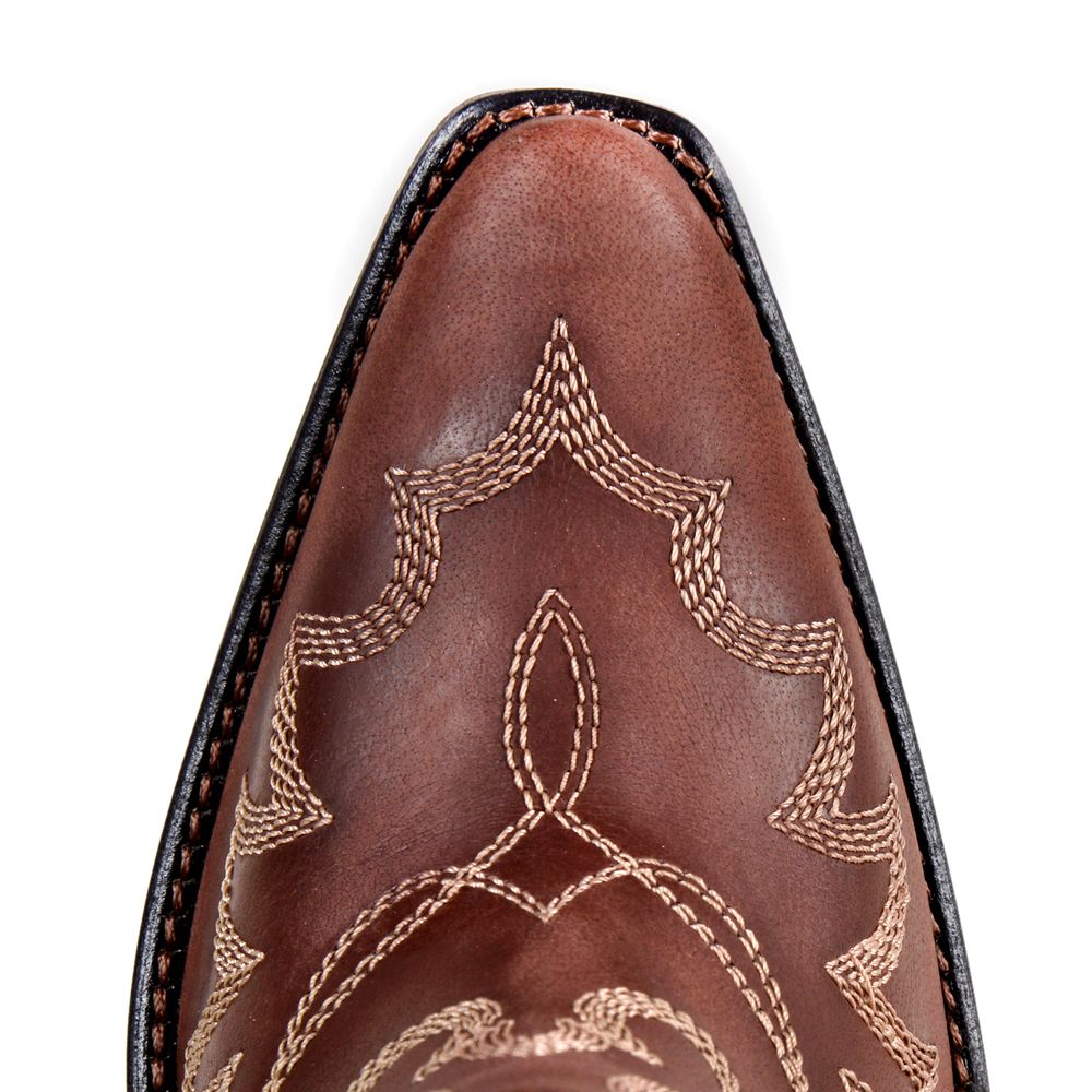 This pair of dark brown boots with subtle golden strings of patterns on top will be a perfect choice for a party night.