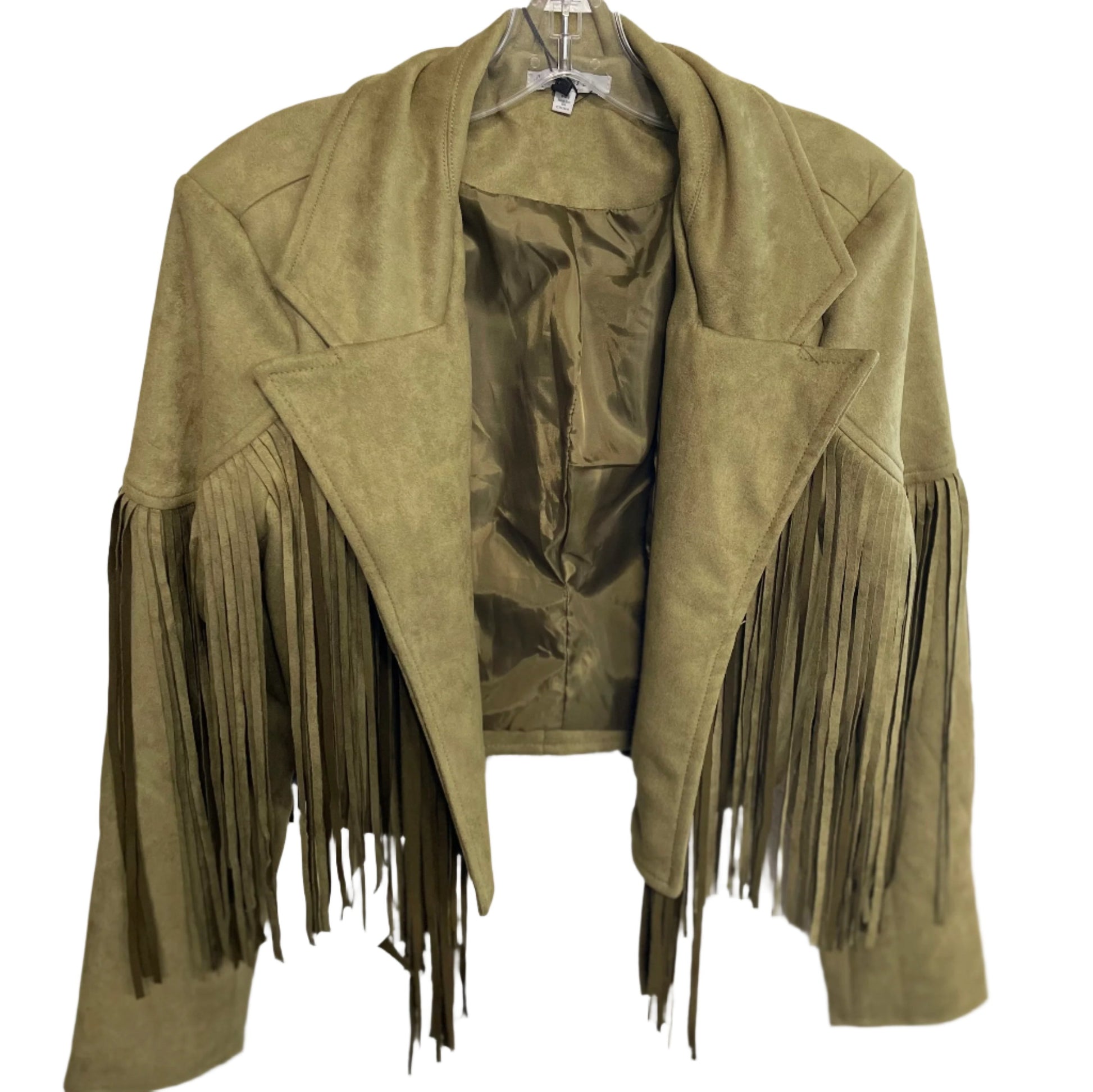 The Olive Moto Jacket is made of suede and features all around fringe in a cropped design.