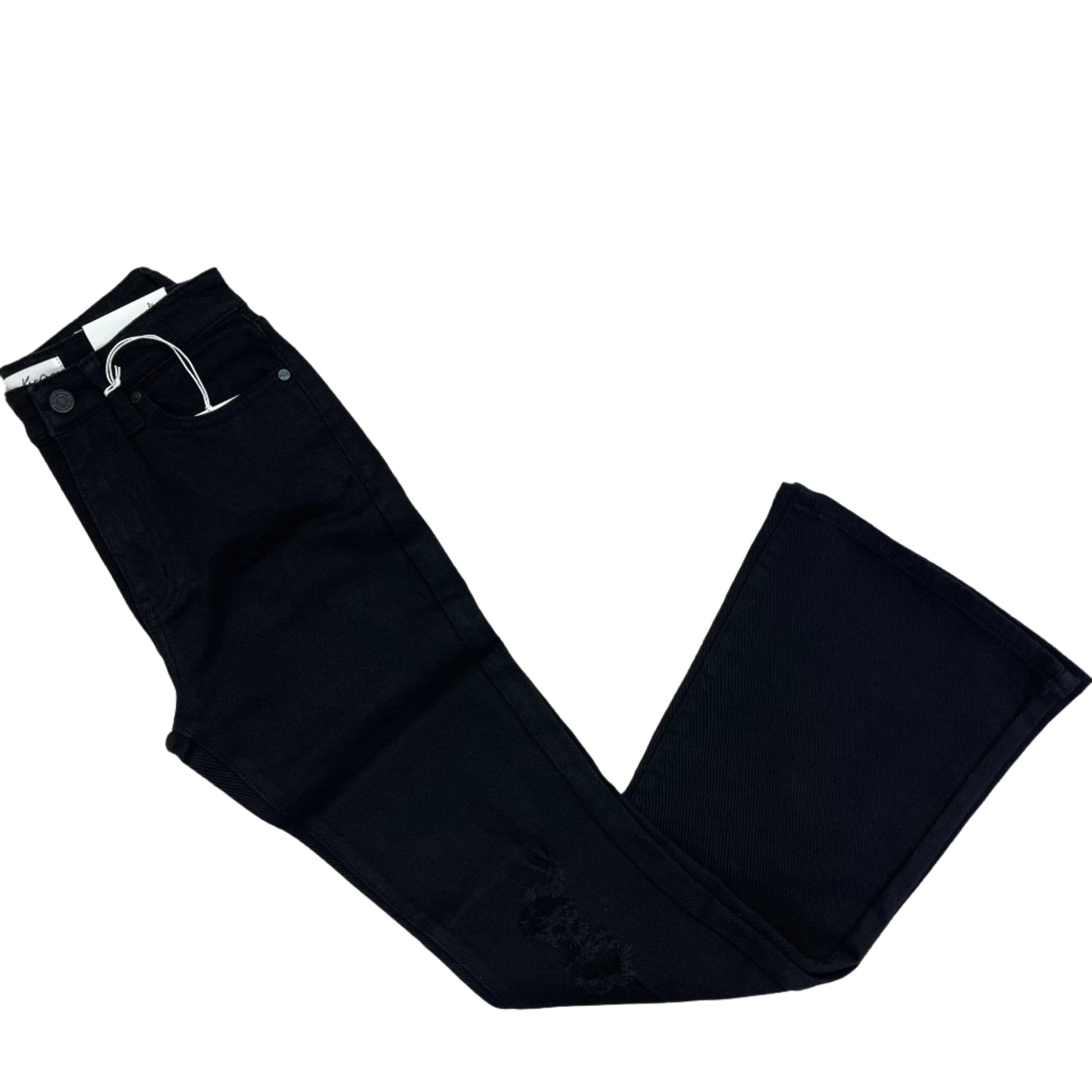 These jeans are designed to cater to the petite frame, ensuring a perfect fit for those with a smaller stature. The black wash adds a touch of sophistication to the distressed detailing, making it a versatile piece that can be dressed up or down. The high-rise waistline provides a flattering silhouette, while the flare cut adds a touch of retro charm. The stretch fabric ensures maximum comfort and flexibility, making it an ideal choice for everyday wear.