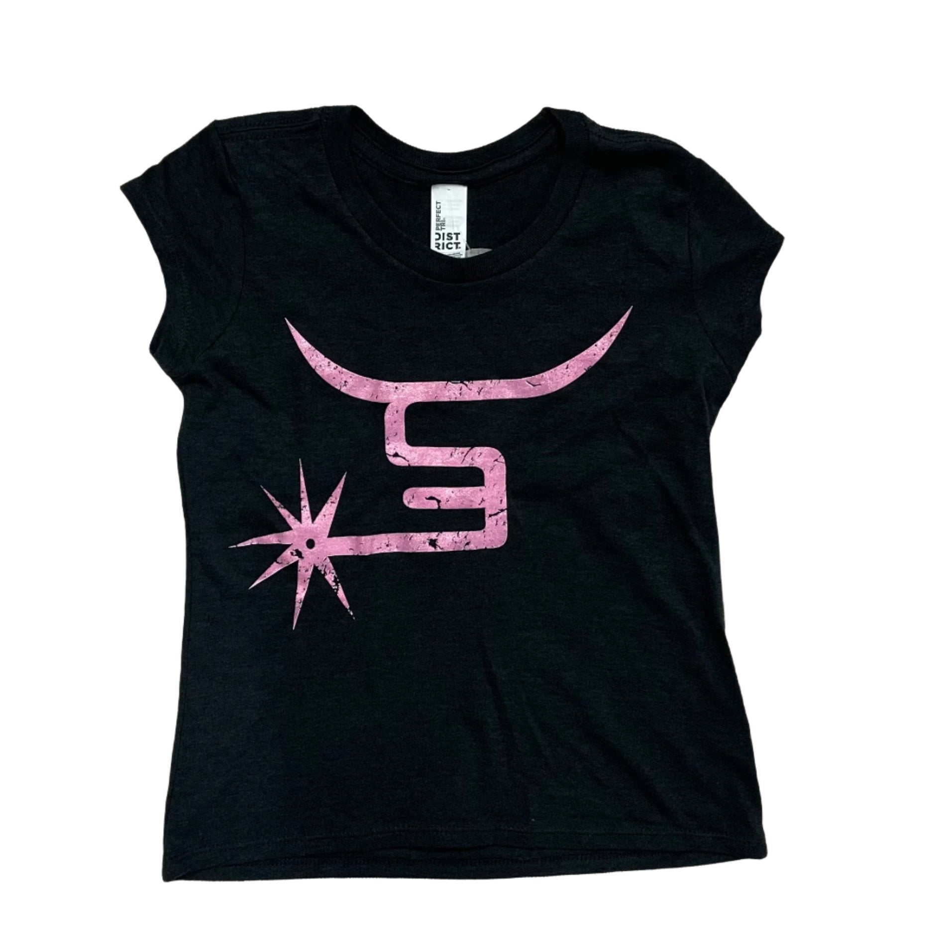 The Spin 'Em pink logo tee features the Spin 'Em logo in pink on a heather gray shirt.