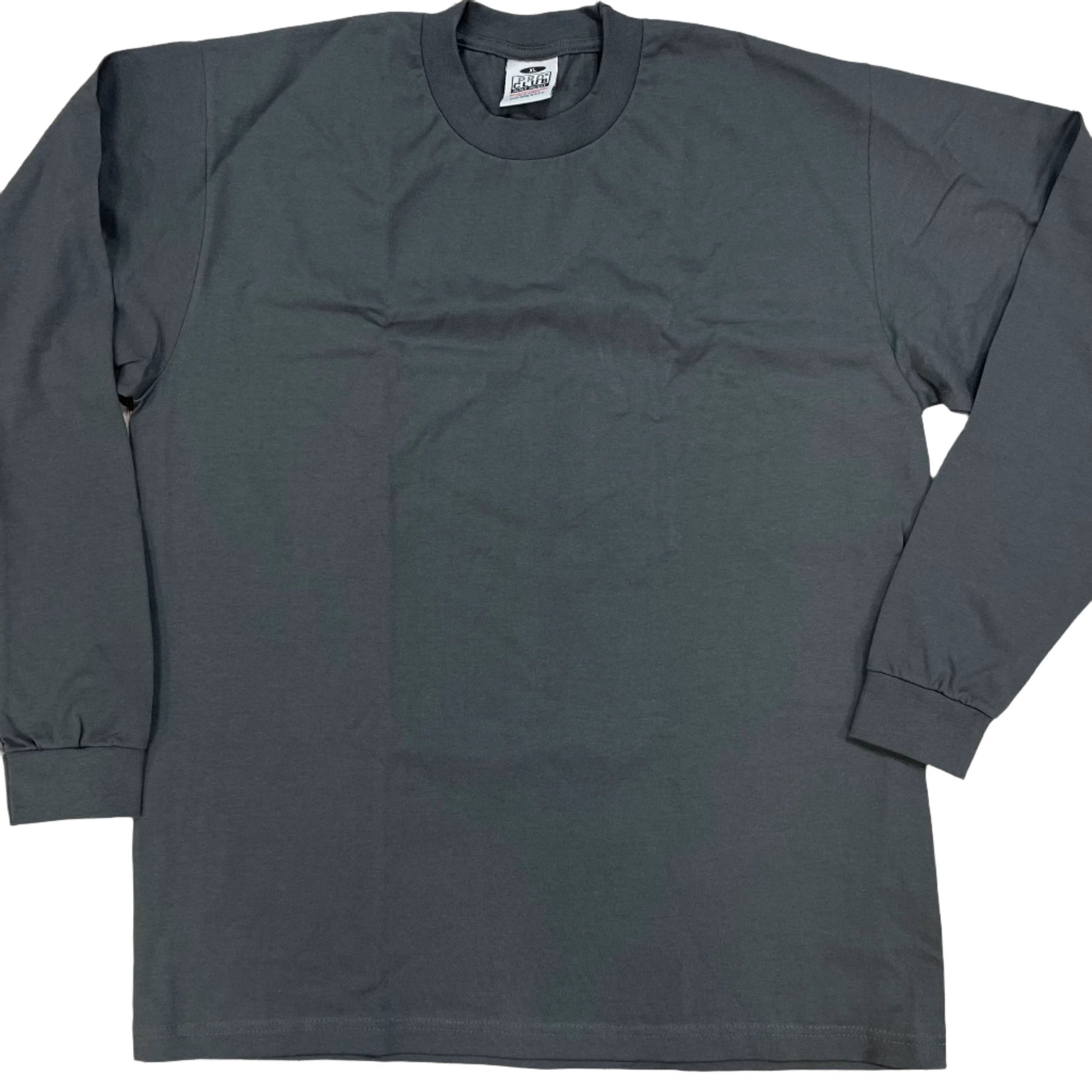 The Pro Club Heavyweight long sleeve in Graphite is extra thick, made with 100% cotton jersey construction. It features a classic crew neck and is durable.