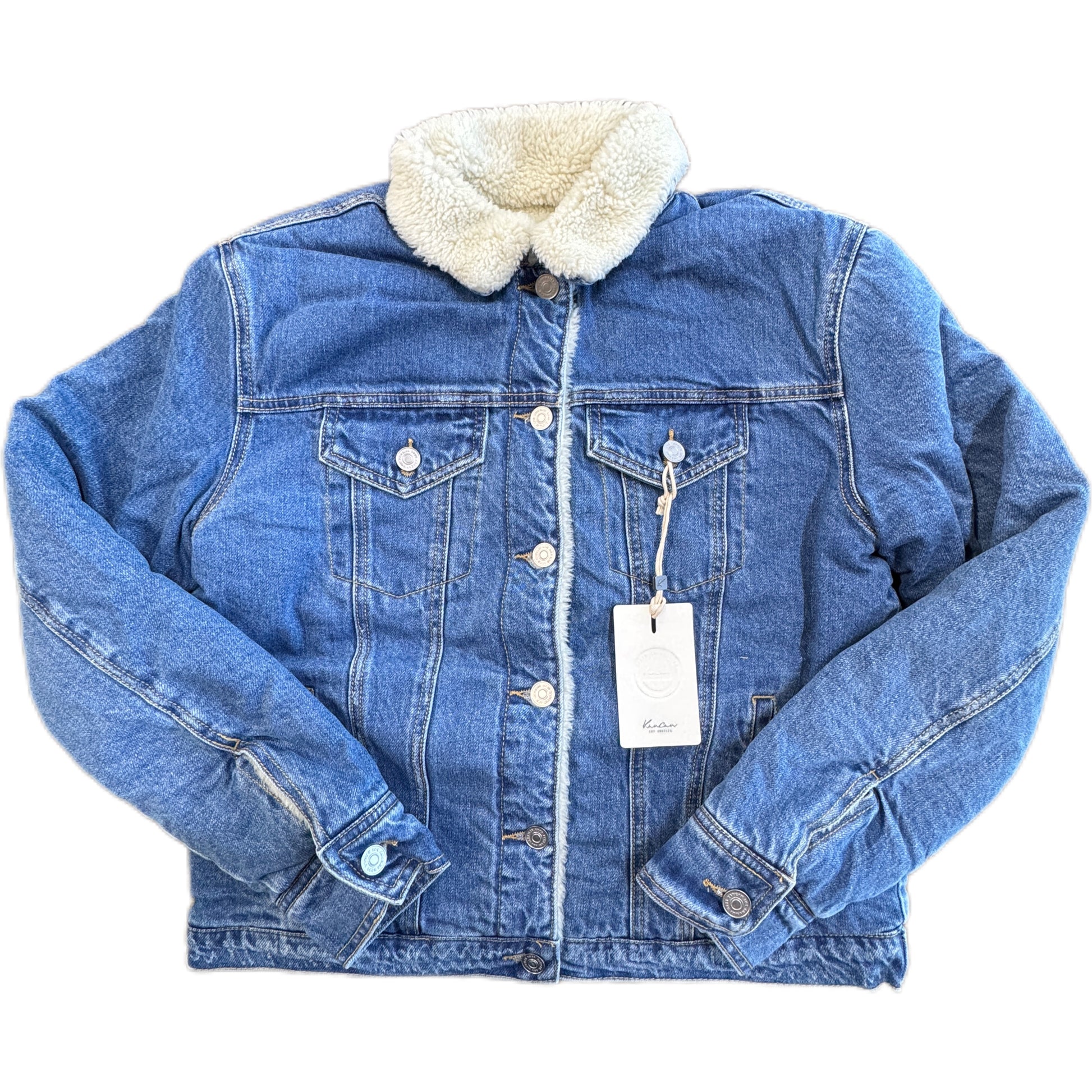 Stay warm and chic with the Rosalia Sherpa Jacket. The Jacket has an edgy vibe, perfect for layering up on a night out on the town or covering up during the colder seasons. Accented with trim along the bottom, buttons and front pockets. Features two side pockets, two button-flap pockets at the chest, and a button closure.