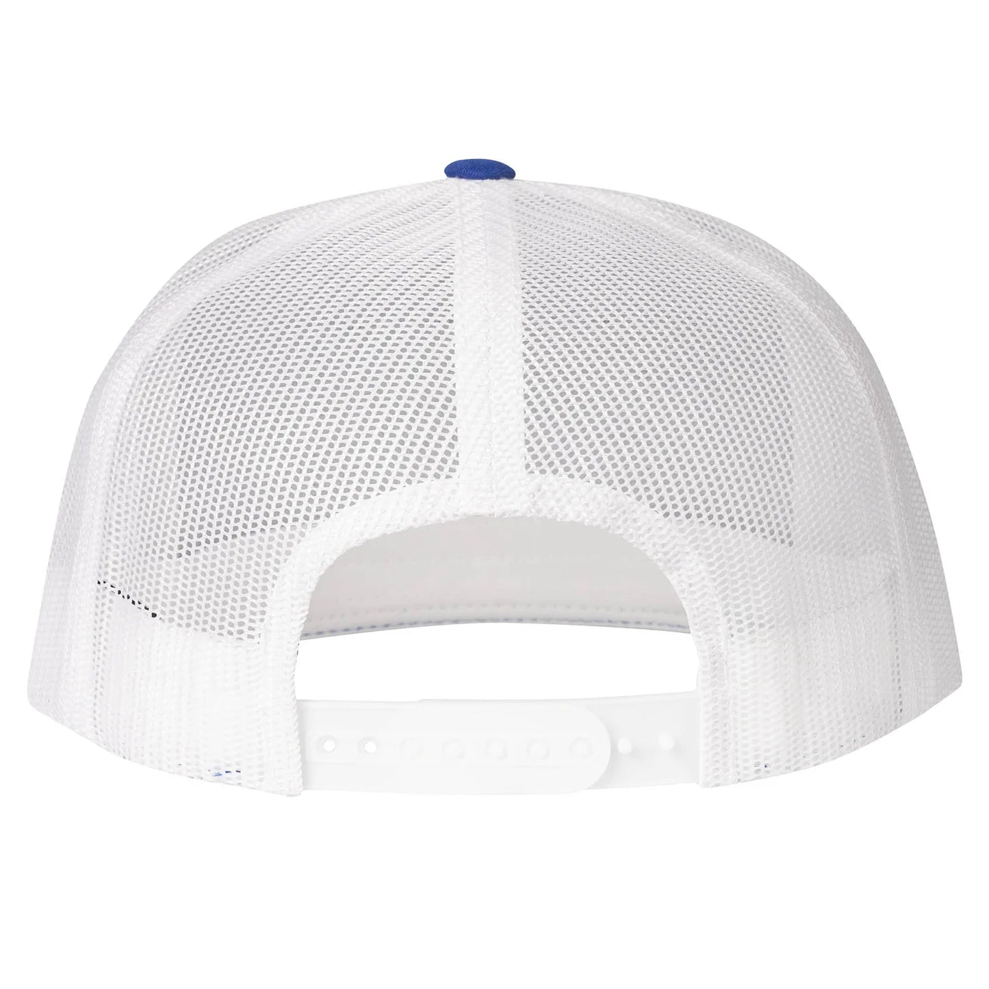 Lazy J Ranch Wear Cattle Headquarters Patch Classic Five Panel Trucker Hat. Royal Blue front, white mesh back. 4 inch crown. Adjustable.