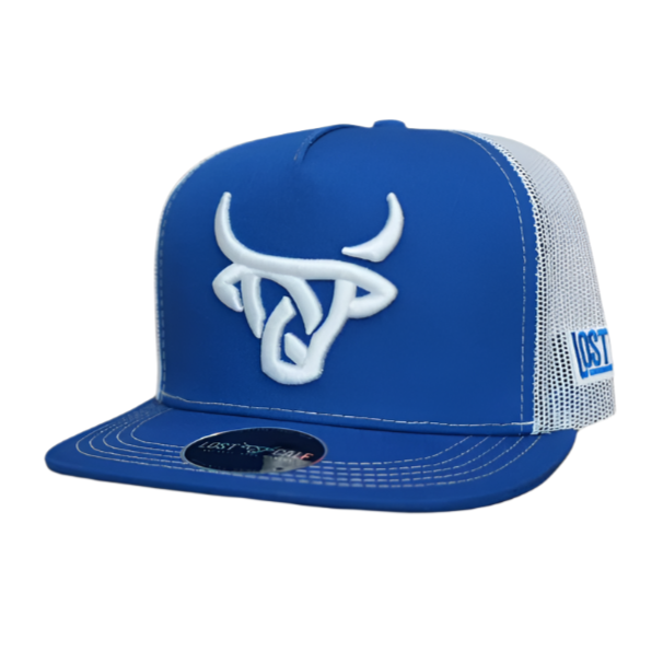 Baseball cap with Lost Calf logo embroidered on front in Black , Lost Calf stitched on left side. Snap back - one size fits all.