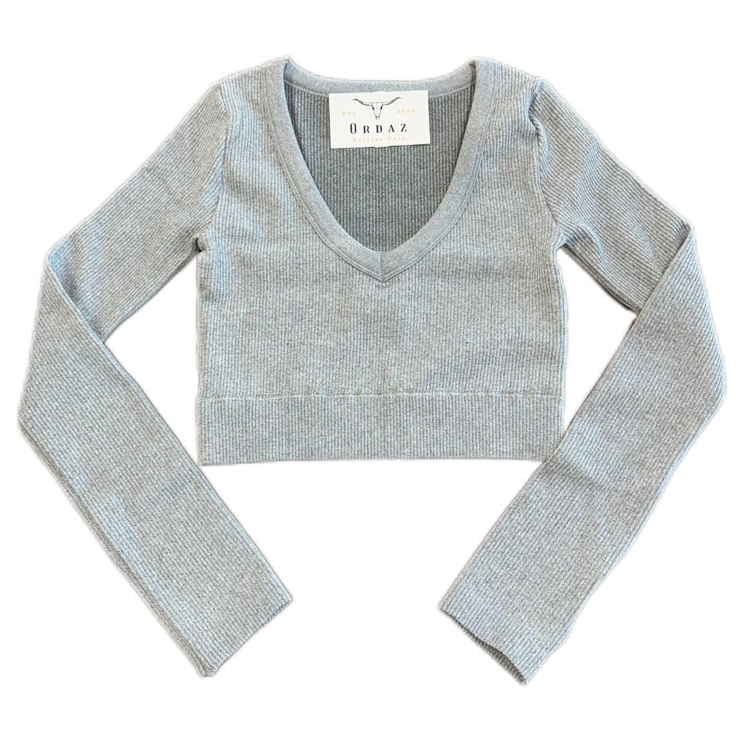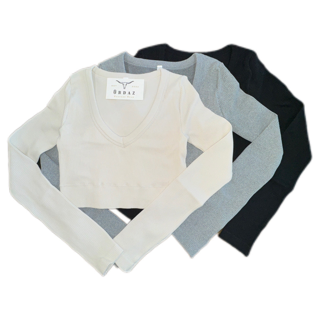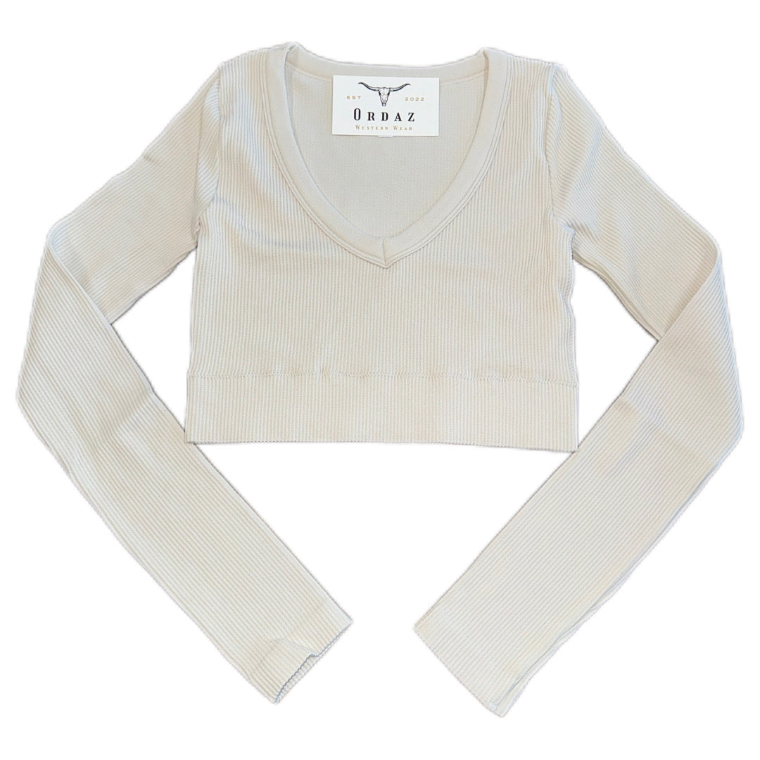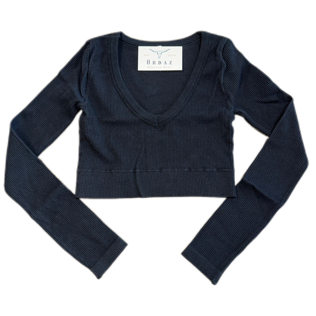 Fitted rib V-neck long sleeve crop top