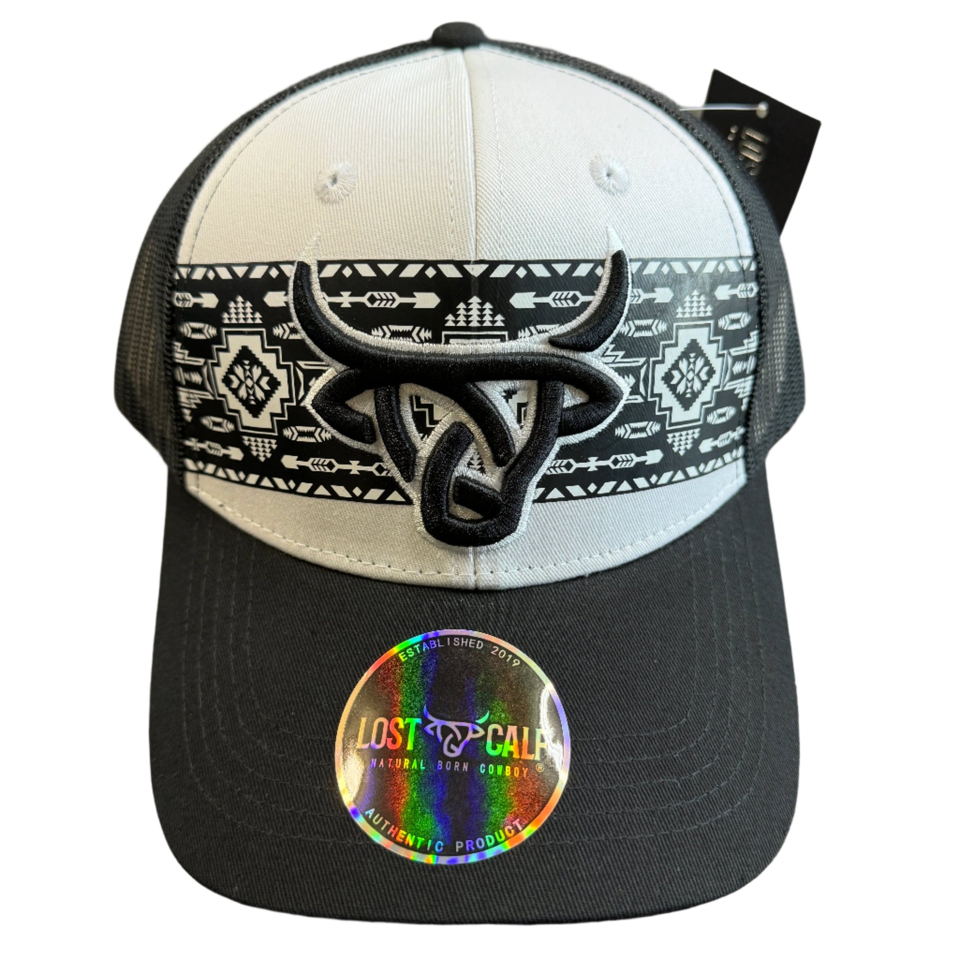 Baseball cap with Lost Calf logo embroidered on front, Lost Calf stitched on left side. Snap back - one size fits all.