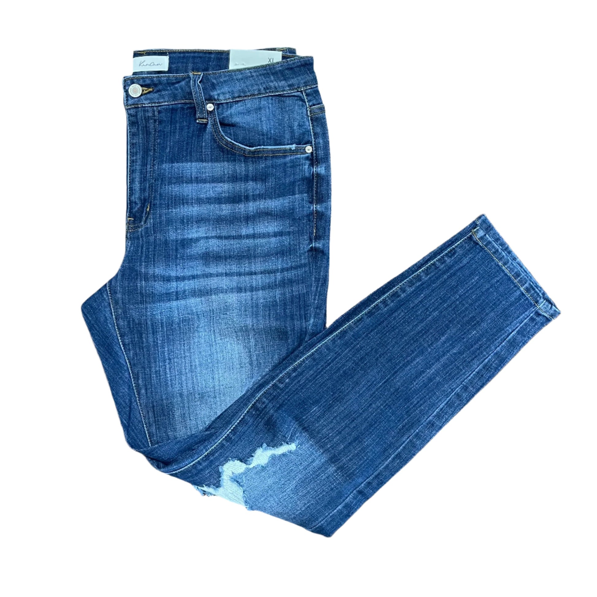The skinny petite Mid-Rise Jeans come in a super skinny cut with a gently faded wash and 3-D whiskering that gives this style a slightly worn-in look. Made with super-stretch denim that's soft and flexible. Features a classic five-pocket design, single-button front, and zip-fly closure.