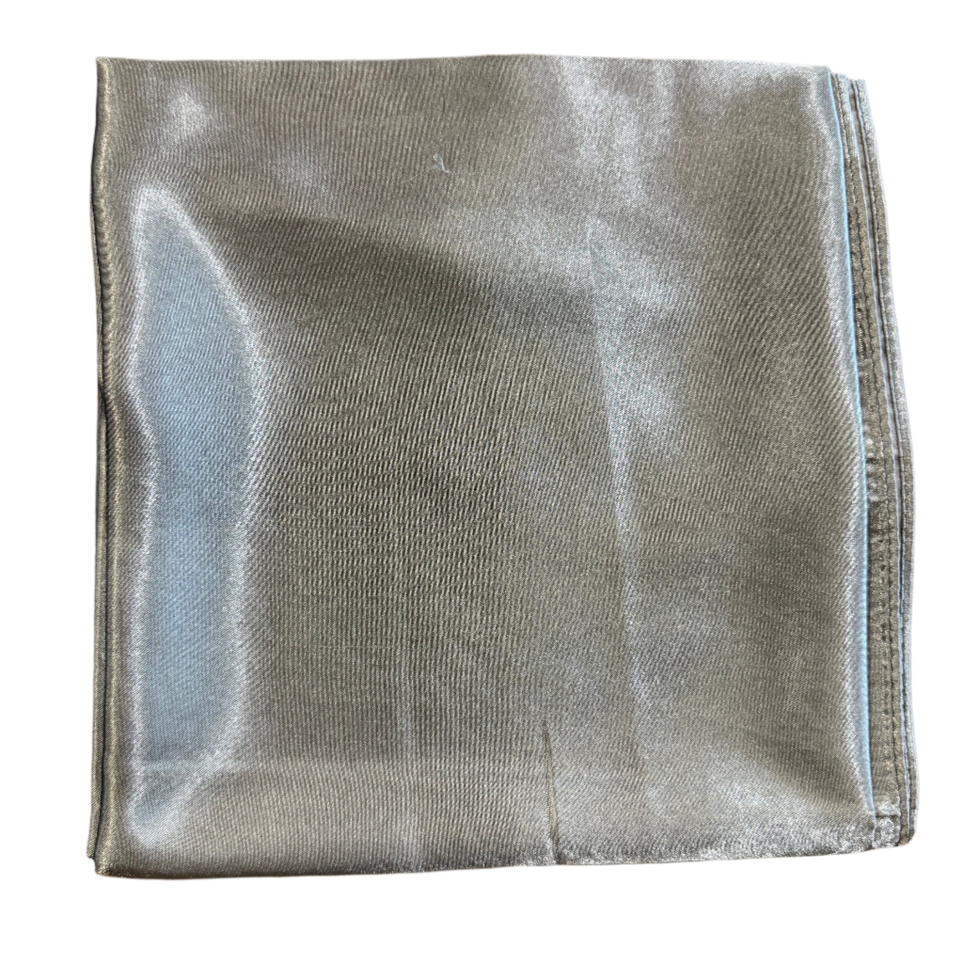 The classic wild rag/scarf in solid silver color. It is a square and measures 35" x 35". It is sure to add a bright pop of color to any outfit.