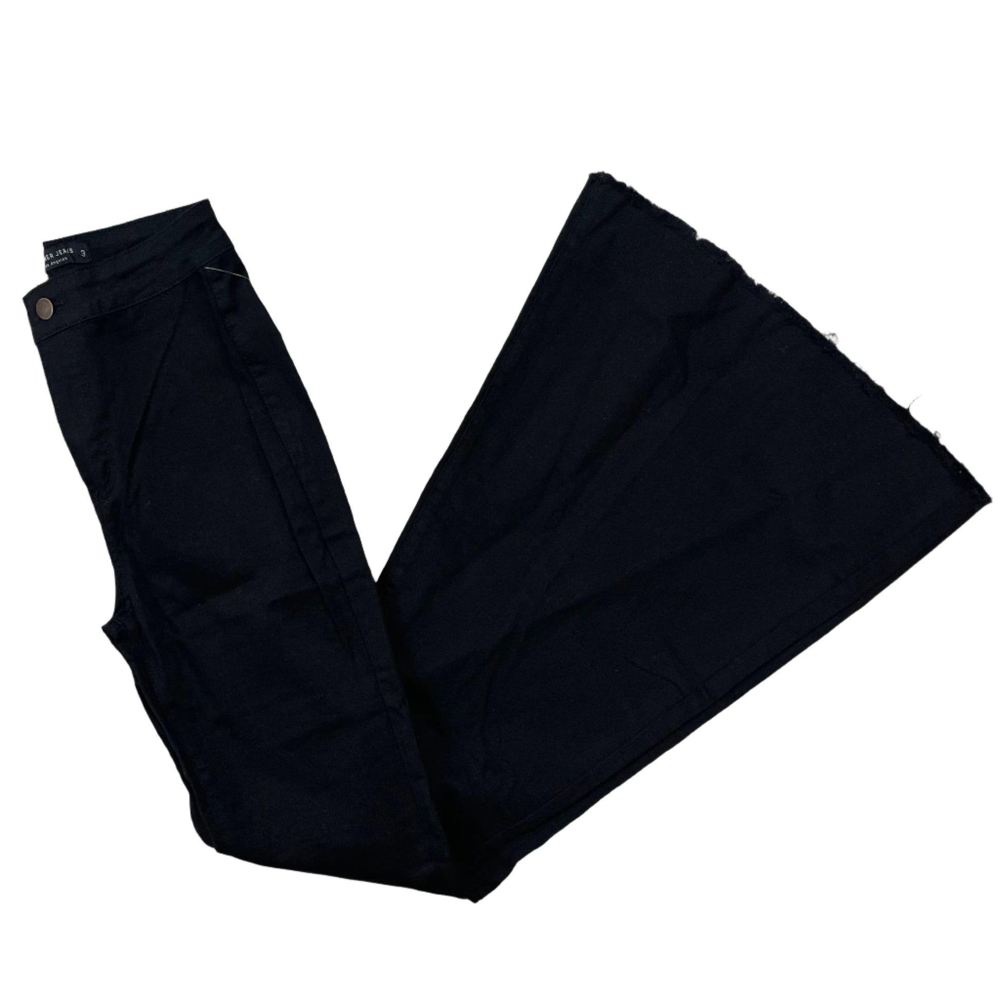 The Super Flare Jeans in black feature a high rise style with fake front pockets and functional back pockets.