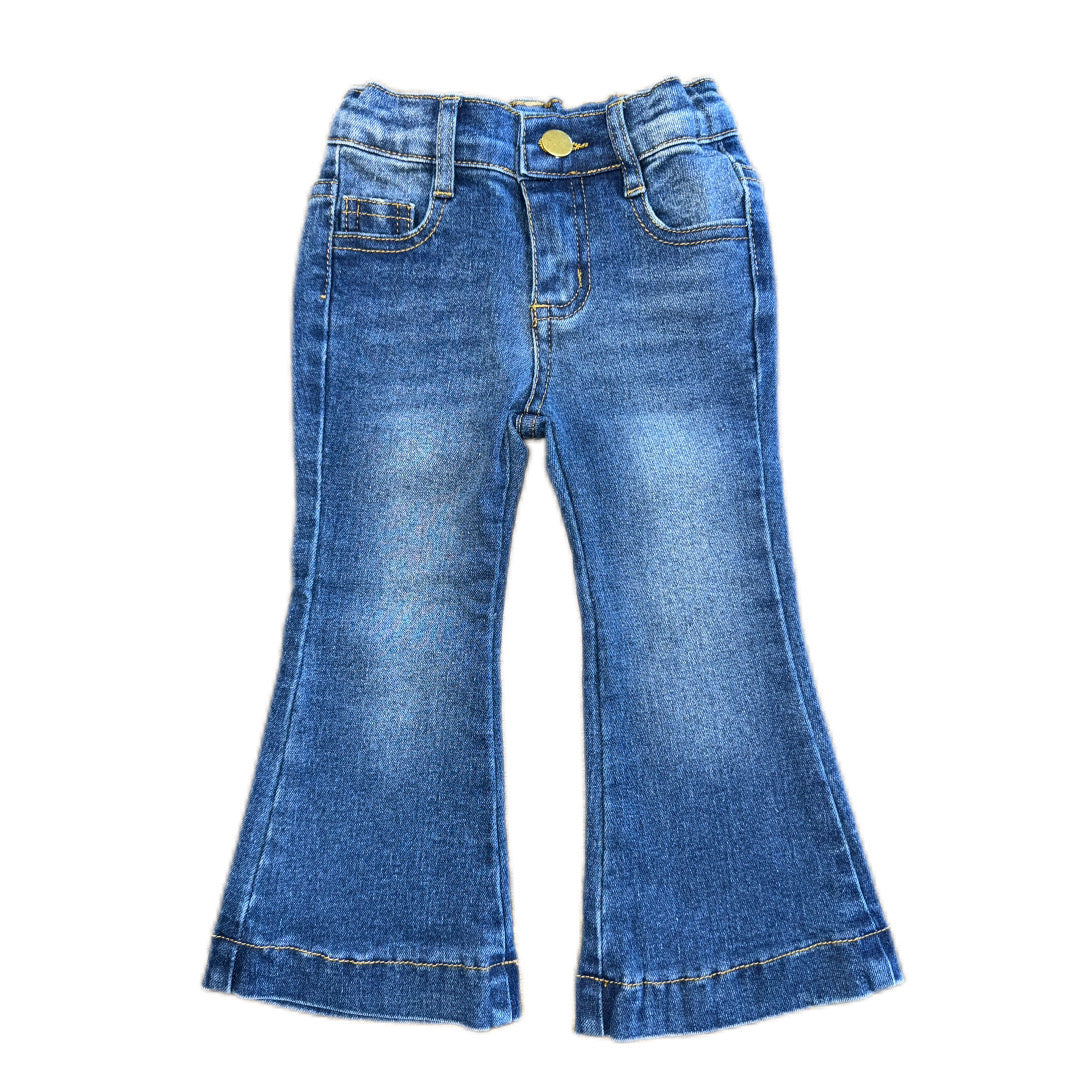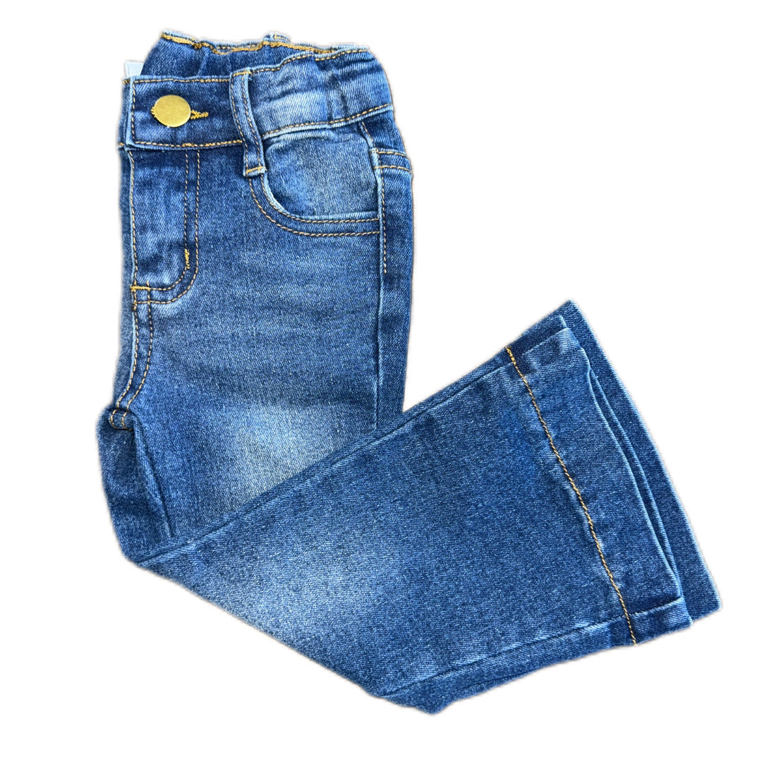 These jeans come with an adjustable elastic waist band that provides the perfect fit while Flared leg allows for a comfy easy fit over your kiddos boots. Not only are these jeans perfect for riding or on the ranch they are also perfect for going out to the County Fair.