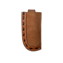 Carry your favorite knife with you every day with this 3D vertical knife sheath. Made of quality genuine brown leather. Brown roughout body with a brown leather edge and twisted brown buck lace.