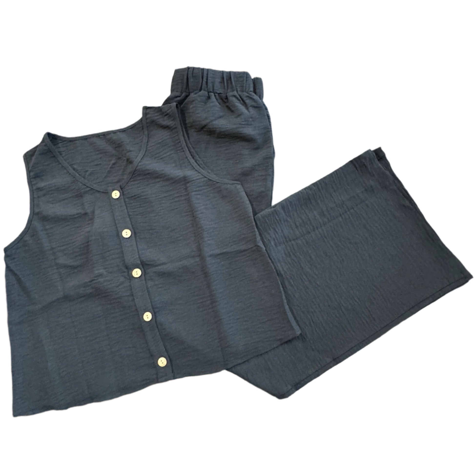 - The crop vest in a boxy fit while the casual pants are relaxed