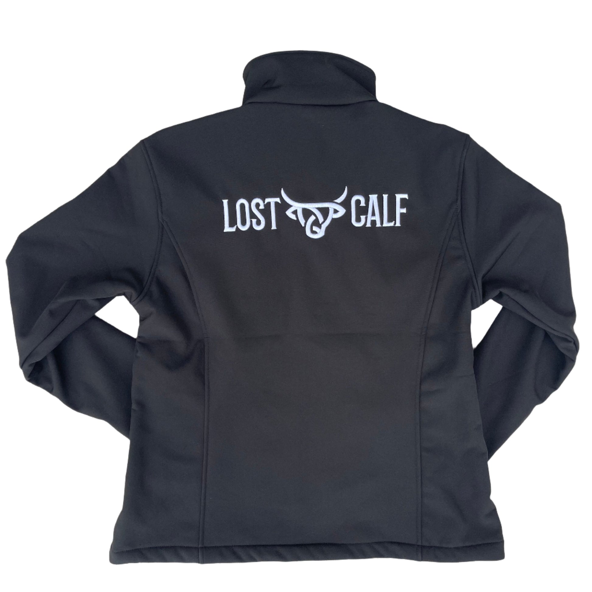 The Lost Calf Classic softshell jacket for Women features a white Lost Calf embroidered logo on the left chest and back. This jacket is wind-resistant, water-resistant, and offers a 4-way stretch. The Lost Calf softshell jacket features front zippered pockets and a pocket on the chest.
