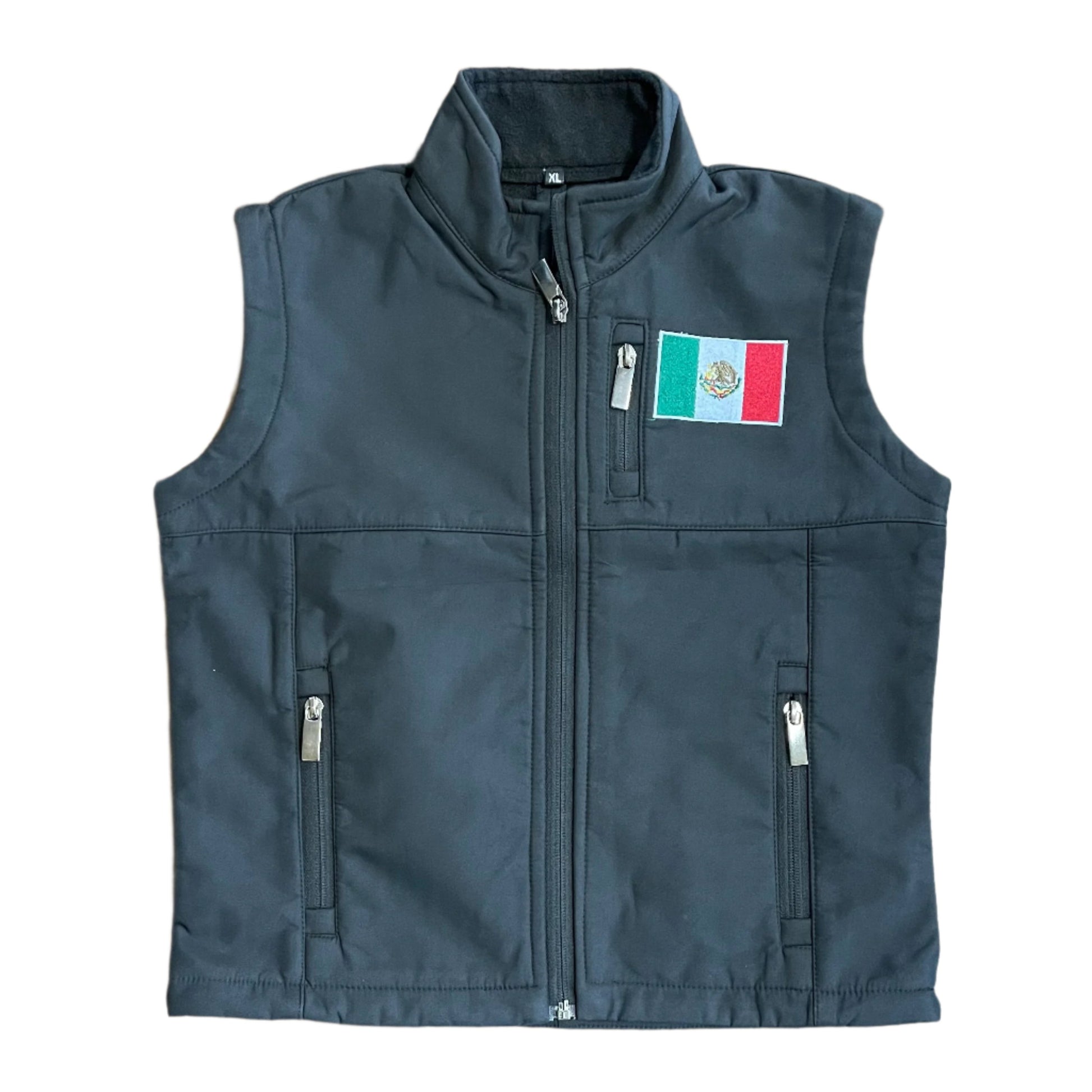 The Boy's Mexico Vest from The American West is fleece lined with a Mexican flag on the left chest and upper back.